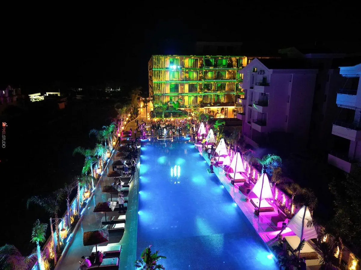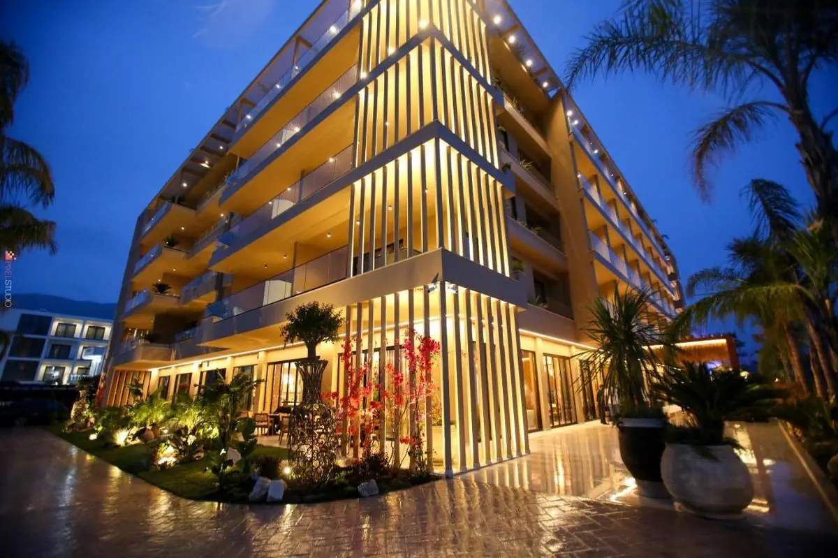 Ok. 50 m od prywatnej skalistej plaży leży hotel plażowy Regina Palm Resort. Na plaży parasole słoneczne i leżaki do opalania dostępne są bezpłatnie. Miasto Himare jest oddalone o około 45 km (Dhermi około 29 km). Najbliższe sklepy znajdują się ok. 15 km od hotelu, do najbliższego supermarketu można dotrzeć po ok. 200 m. Najbliższe bary i restauracje położone są również w odległości w odległości ok. 200 m. Z hotelu można wygodnie dotrzeć do następujących atrakcji: Karaburun penisula (ok. 20 km), Sazan island (ok. 20 km) oraz Vlora old town (ok. 15 km). Wypożyczalnia samochodów i przystanek autobusowy (ok. 50 m) zapewniają mobilność podczas urlopu. W nagłych sytuacjach opieki medycznej udzieli oddalony o ok. 17 km szpital. Lotnisko (TIA) położone jest ok. 175 km od hotelu. Wyposażenie : Ten hotel oddaje do dyspozycji gości 76 pokoi. Hotel posiada recepcję (check-in od godz. 14:00, check-out do godz. 11:00), lobby z barem, windę, klimatyzację, sejf (bezpłatny), parking (bezpłatny) oraz kantor wymiany walut. W hotelu znajdują się dwie klimatyzowane restauracje. Goście hotelowi mogą bezpłatnie korzystać z wi-fi w wyznaczonych miejscach. Basen: Na terenie zewnętrznym tego nowoczesnego hotelu znajduje się basen ze słodką wodą z zintegrowanym basenikiem dla dzieci. W strefie basenowej są dostępne parasole słoneczne i leżaki do opalania (bezpłatnie). W przybasenowym barze można delektować się orzeźwiającymi napojami. Wyżywienie: Śniadanie w formie bufetu. Opcja częściowego wyżywienia obejmuje śniadanie i kolację. All Inclusive: śniadanie, obiad i kolacja. Śniadanie, obiad i kolację można zjeść jedynie w wybranych restauracjach. Napoje bezalkoholowe, ciasta i wyroby cukiernicze, piwo, wino oraz przekąski w określonych godzinach. Sport/czas wolny: Aktywności sportowe i rekreacyjne: siatkówka plażowa. W odległości ok. 100 m od hotelu można skorzystać z oferty sportów wodnych (realizacja przez firmy zewnętrzne). Oferty wellness: masaże za opłatą. Informacje dodatkowe: Niektóre obiekty oraz aktywności mogą podlegać dodatkowym opłatom. Część usług zależy od pory roku i lokalnych warunków klimatycznych. Personel hotelu mówi po angielsku. Dostępne opcje płatnicze: Eurocard/MasterCard.DOKONANIE REZERWACJI - Regina Palm
