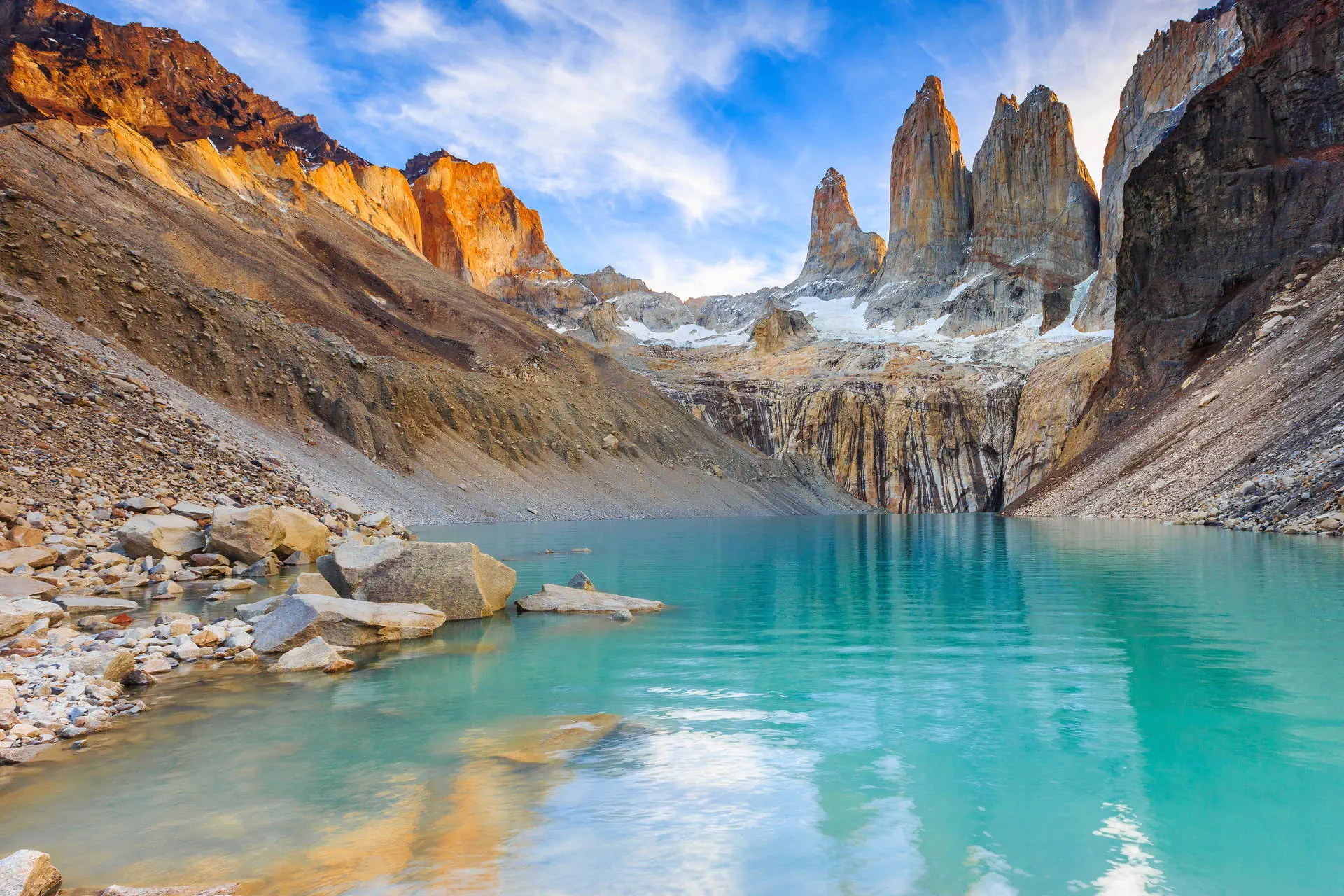 Po wczesnym śniadaniu (możliwy breakfast box na drogę), wykwaterowanie i przejazd do Parku Narodowego Torres del Paine (Chile). Park ten, wpisany na listę rezerwatów biosfery UNESCO, jest bez wątpienia jedną z największych atrakcji Chile i jednym z najpiękniejszych górskich Parków na świecie. Kordyliera del Paine, wypiętrzyła się niezależnie od Andów i swoją sławę zawdzięcza przede wszystkim połączeniu różnych kolorów skał osadowych i wulkanicznych. Znajdziemy tu jeziora mieniące się różnymi odcieniami błękitu i turkusu, rozległe lasy, niespotykane widoki. Być może to tutaj poczujemy czym jest prawdziwy wiatr patagoński, wiejący nawet z prędkością 120 km/h. Park jest również domem dla wielu gatunków zwierząt min.: dzikich kaczek, guanako, nandu, kondorów. W trakcie naszej wycieczki podjedziemy na punkty widokowe ,skąd zobaczymy masywy Los Cuernos i Torres del Paine. Udamy się nad błękitne jezioro Pehoe, a przy odrobinie szczęścia spotkamy mieszkające tu dzikie guanako. Przyjazd do Puerto Natales, zakwaterowanie i nocleg. (Trasa ok. 400 km).