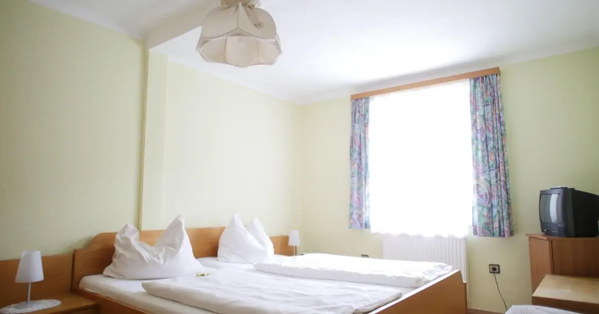 pokój sypialny z łóżkiem podwójnym i TVPokój 2-osob./dostawka prysznic/WC, HB, DZHM - Eisenerzer Hof