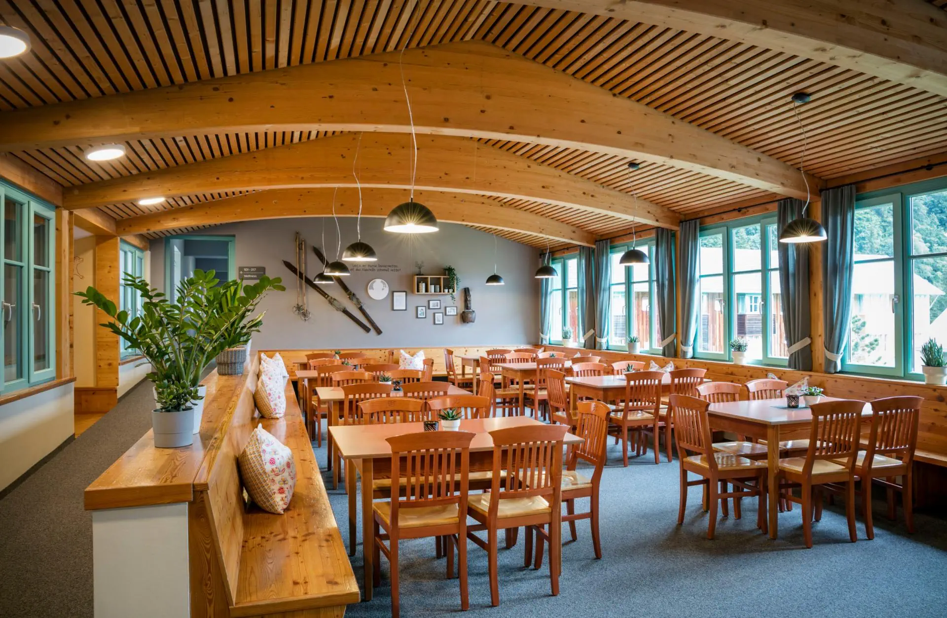 - recepcja - lobby - kawiarnia - restauracja - bar - narciarnia Bezpłatnie: - wellness 85m2 - sauna - sauna fińska - strefa relaksu - tenis stołowy Za dodatkową opłatą: - piłkarzyki Dla dzieci: - plac zabaw - krzesełka w restauracji - łóżeczko dla dzieckaPokoje: - JUFA Eisenerz