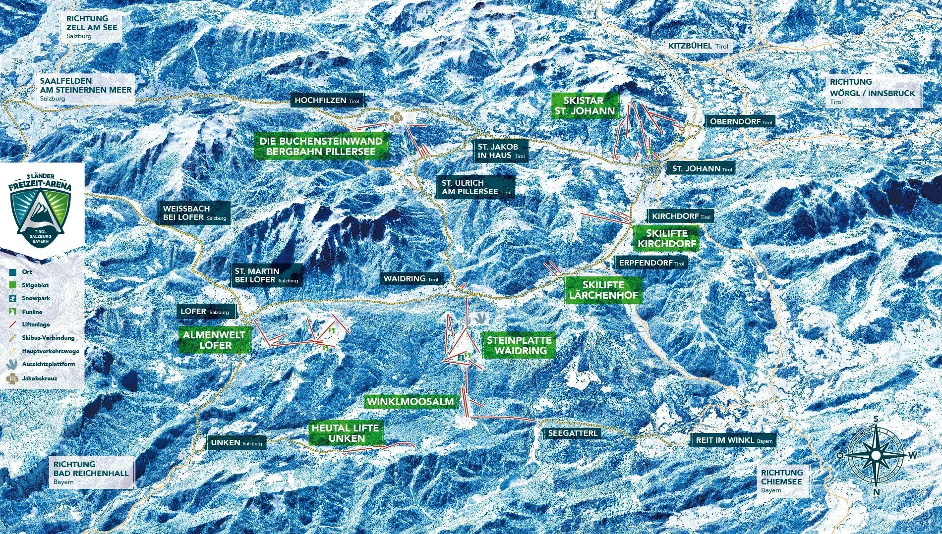 Maks. wysokość: 1860 mMin. wysokość: 640 mWys. miejscowość: 641 mWyciągi łącznie: 54Orczyki: 29Krzesełka: 17Gondole: 8Trasy łącznie: 160 kmTrasy zielone/niebieskie: 101 kmTrasy czerwone: 53 kmTrasy czarne: 6 kmRegion narciarski Super Ski Card - Vital-Hotel Berghof