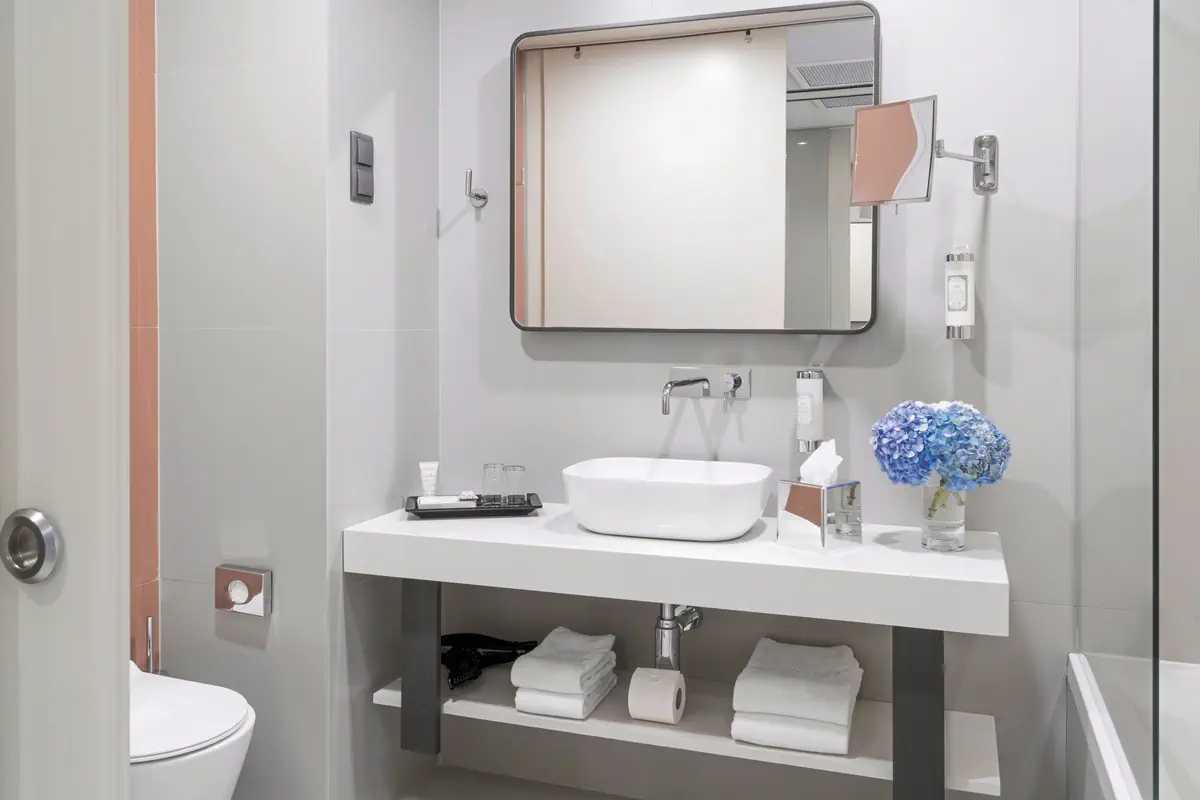 26-30 m², podwójny, kącik wypoczynkowy, łóżko podwójne (king size), wanna, szlafrok kąpielowy, kapcie kapielowe, suszarka do włosów, klimatyzacja, minibar płatne, sejf, TV, Wi-Fi, czajnik, ekspres do kawy, balkon lub taras (umeblowany)Dreibettzimmer Standard (TG1) - Verde Mar & Spa
