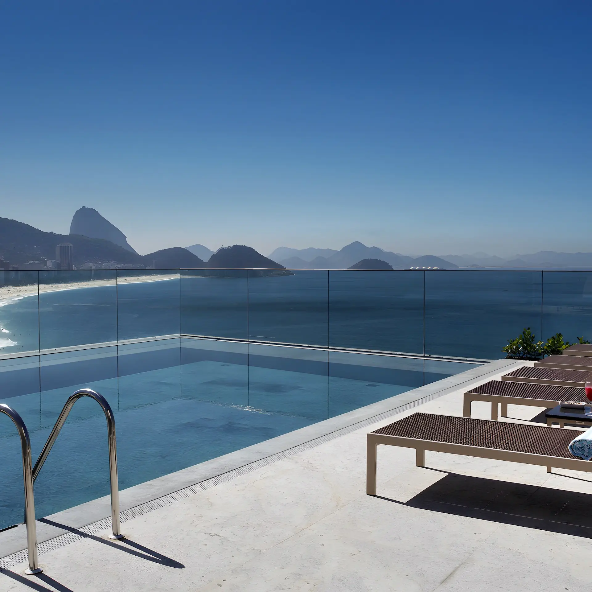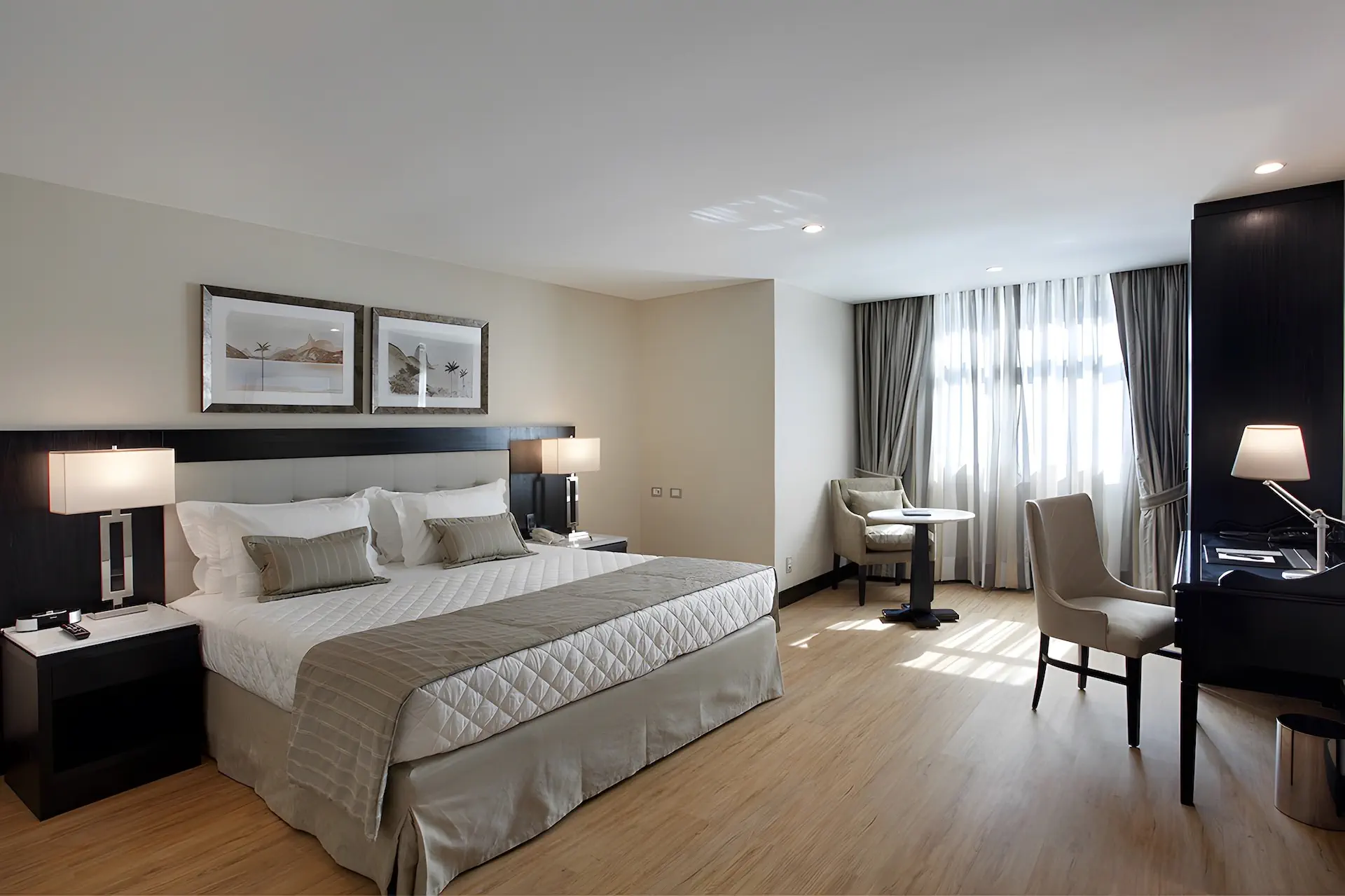 Ogólnie - pięciogwiazdkowy - odnowiony w 2013 r. - 200 pokoi - 1 budynek - 15 pięter - windy - lobby - całodobowa recepcja - centrum konferencyjne - bezpłatny internet bezprzewodowy - parking - akceptowane małe zwierzęta domowe (do 5 kg; za opłatą) - akceptowane karty kredytowe: Visa - MasterCard - American Express. Basen - basen infinity na dachu - słodka woda - bezpłatne parasole i leżaki - siłownia. Usługi Powyższe usługi są dodatkowo płatne. - pralnia Kontakt - 0055/2121956200 - www.windsorhoteis.comDostępne pokoje - Miramar By Windsor