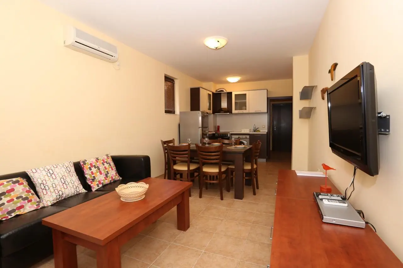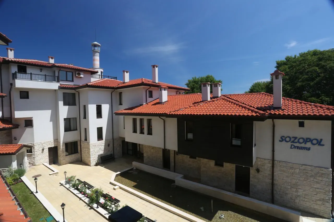 Sozopol Dreams to komfortowy aparthotel położony w Sozopolu, zaledwie 200 m od plaży. Obiekt, zbudowany w 2006 roku i odnowiony w 2019 roku, składa się z 4-piętrowego budynku z 2 windami. Oferuje apartamenty z aneksami kuchennymi, co umożliwia samodzielne gotowanie. Każdy apartament posiada balkon, klimatyzację, Wi-Fi, telewizję kablową oraz łazienkę z wanną lub prysznicem. Hotel oferuje również strzeżony parking za dodatkową opłatą. W pobliżu znajduje się publiczna plaża, na której parasole i leżaki są dostępne za dodatkową opłatą.Kategoria lokalna - Sozopol Dreams