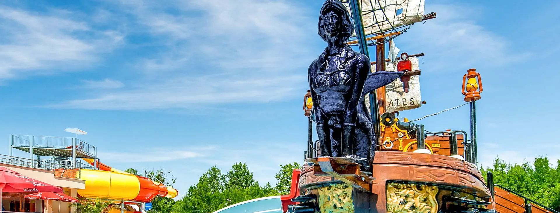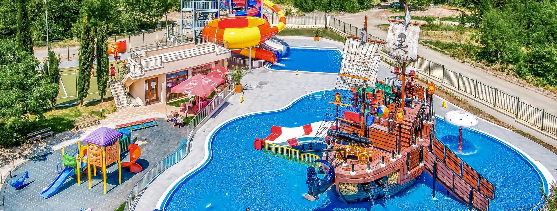 Ekscytujący rejs pirackim statkiem !Turystów wita ekipa animacyjna i personel, którzy są przebrani w stroje pirackie i wyglądają jak bohaterzy z filmu “Piraci z Karaibów”. Statek ma trzy pokłady i zjeżdżalnię wodną. Podczas rejsu drobny poczęstunek, napoje, gry i zabawy.