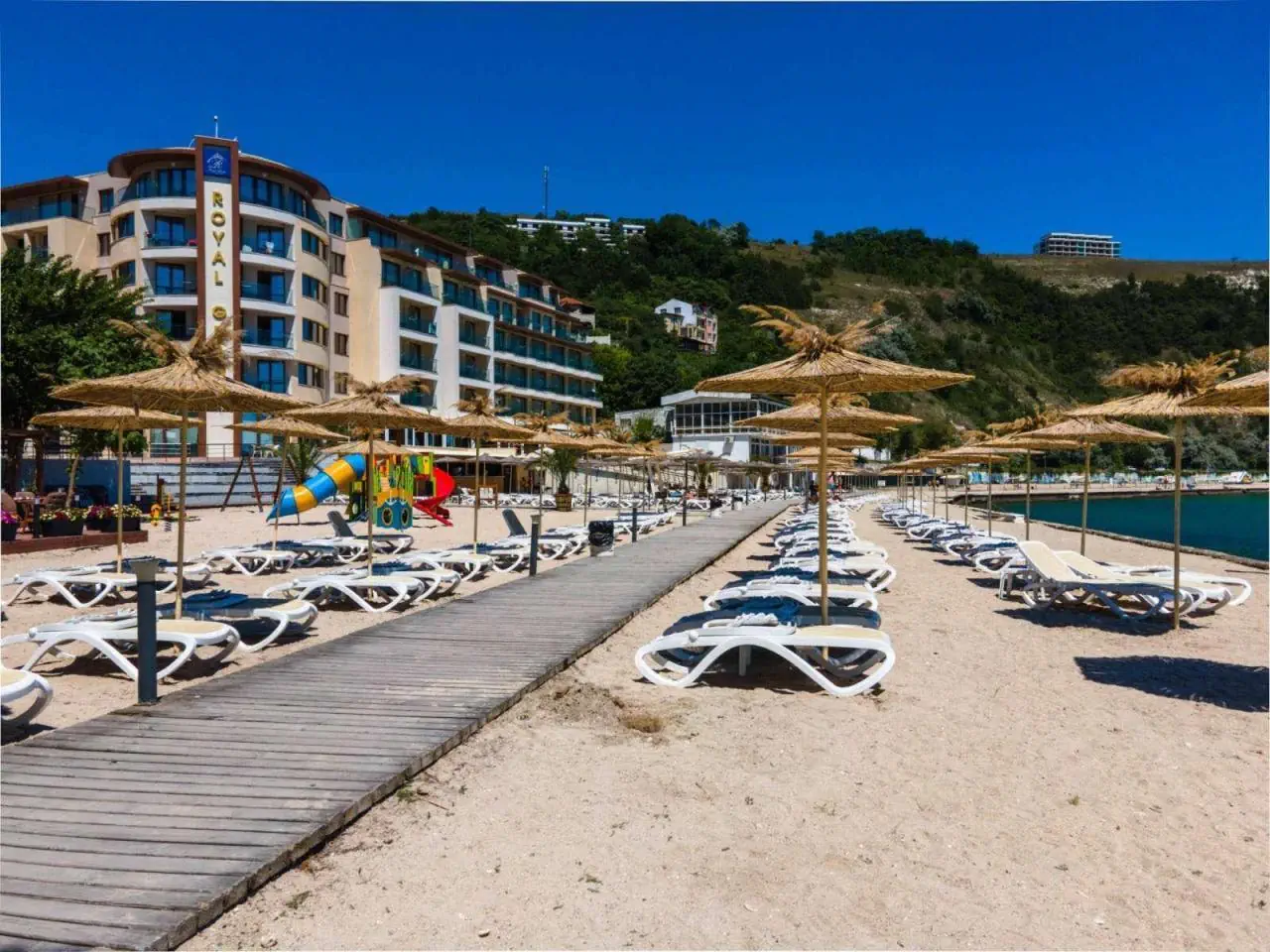 - 140 pokoi - 5 pięter - 2 windy - 24h recepcja - sala konferencyjna - parking (płatny) https://royalhotels.bg/complex/0.Opieka rezydenta: - Royal Grand Hotel & Spa