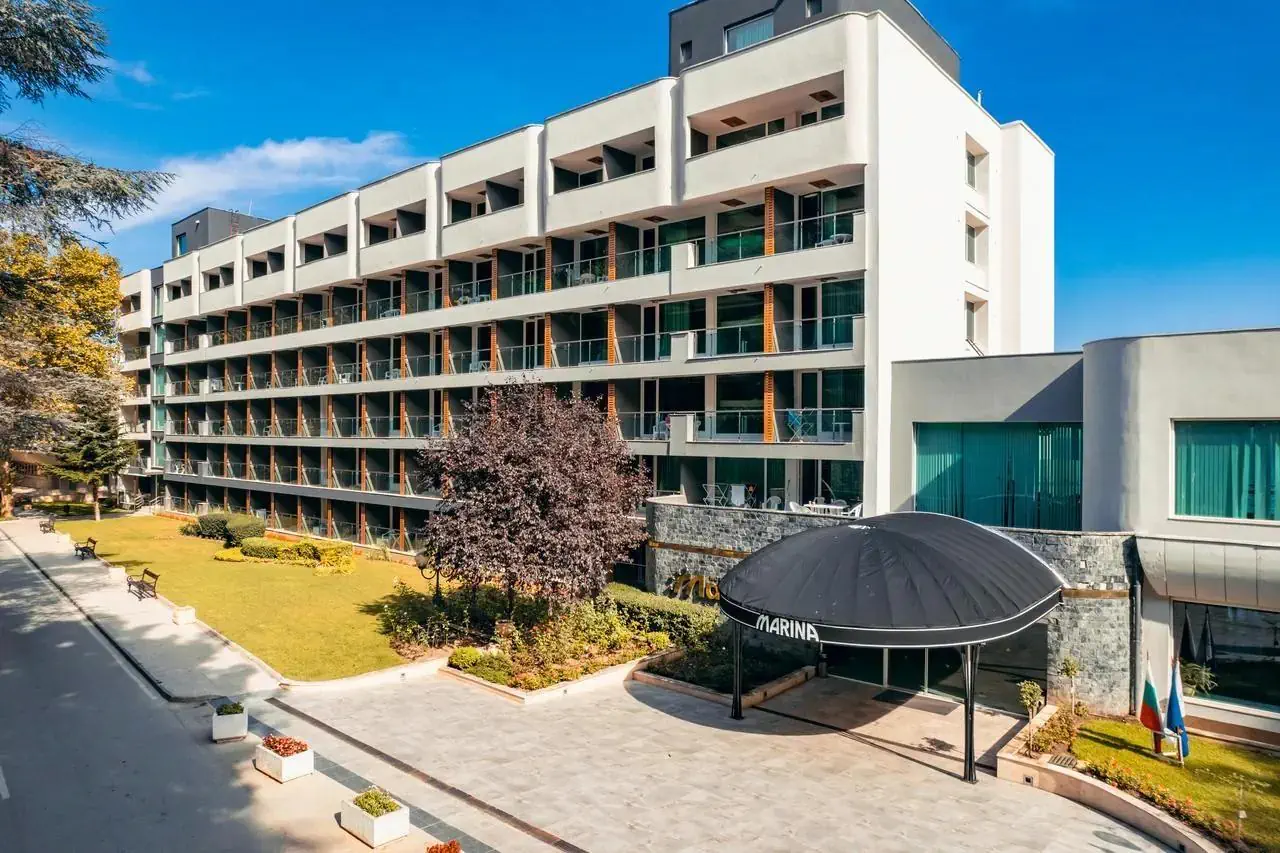 Hotel został wyremontowany w 2021 roku, składa się z budynku głównego 6 pięter). Do dyspozycji gości: całodobowa recepcja, basen zewnętrzny z wydzieloną częścią dla dzieci, leżaki i parasole przy basenie bezpłatnie (w miarę dostępności), restauracja główna, 2 bary (bar w lobby, bar przy plaży czynny od 01.06 do 15.09), miejsca parkingowe w strefie zielonej (bezpłatnie, w miarę dostępności). Płatne: pralnia: sejf na recepcji, , centrum Balneologiczne (w sąsiadującym hotelu Sunny Day Palace): zabiegi i terapie zdrowotne, miejsca parkingowe w strefie niebieskiej (naprzeciwko hotelu, w miarę dostępności), centrum konferencyjne, sala weselna. Na terenie sąsiadującego hotelu Sunny Day Palace (za dodatkową opłatą): centrum Spa & Wellness (całkowicie odnowione w 2020 roku): Thermal Zone (2 rodzaje saun, łaźnia parowa, basen z lodowatą wodą -shock pool), Aquatonic pool z ciepłą, mineralną wodą, strefa relaksacyjna, grota solna, łaźnia turecka, masaże , zabiegi na twarz i ciało.Pokoje - Marina Sunny Day