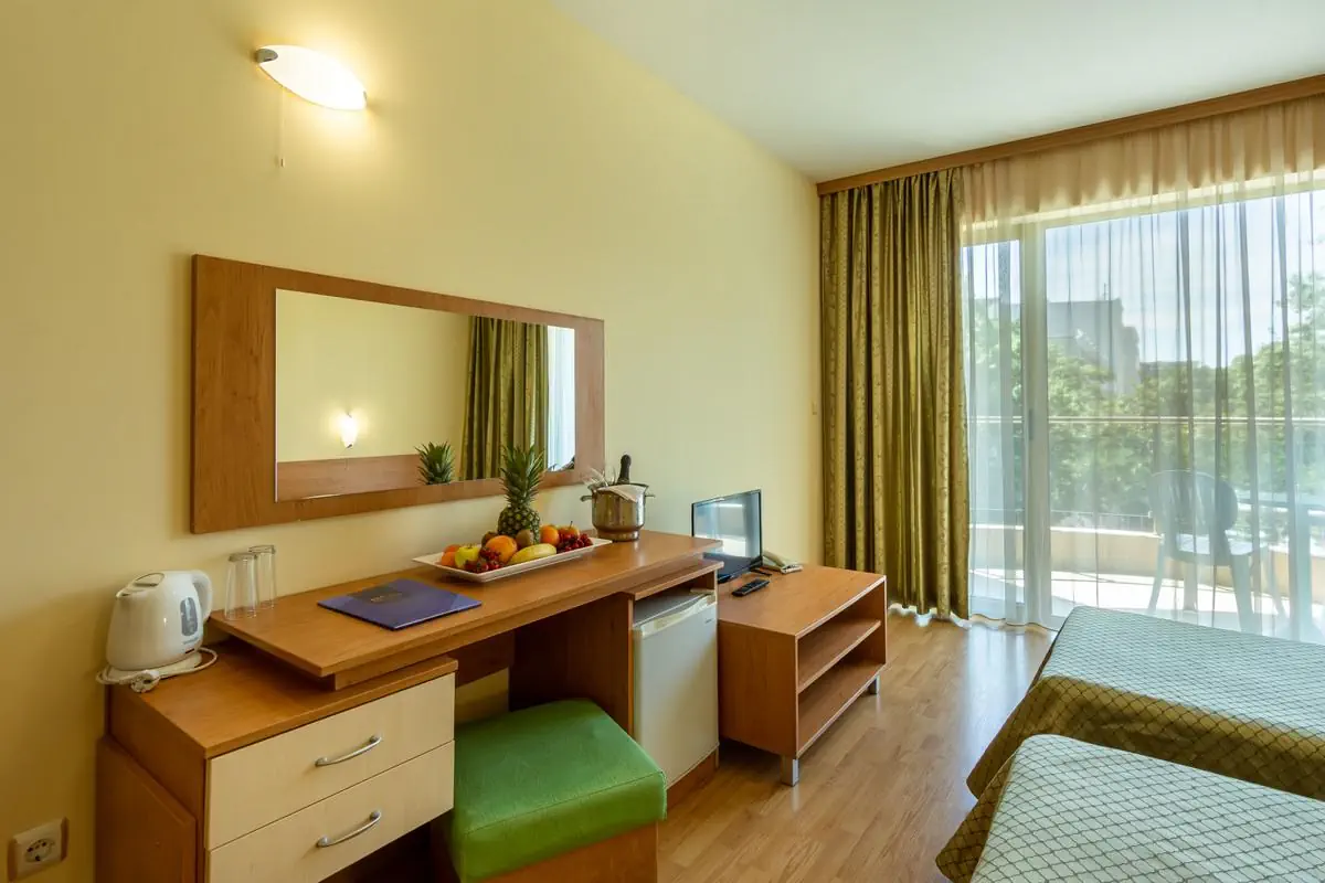 Część usług, sportów i gier dodatkowo płatna. Szczegółowe informacje na temat płatnych i bezpłatnych usług w ramach pakietu (All Inclusive, FB, HB, BB, bez wyżywienia) Goście otrzymują w hotelu. Hotel zastrzega sobie prawdo do modyfikacji wykupionej oferty (godziny podawania posiłków, sposób podawania posiłków, rodzaje napojów itp.). Pakiet różni się w zależności od sezonu (wysoki/niski). All Inclusive (określone napoje i posiłki) w wyznaczonych barach i godzinach. Terminy oraz godziny działania klimatyzacji określa dyrekcja hotelu. Organizator podaje przykładowe propozycje animacji, zabaw, zajęć sportowych, szczegółowe informacje Klienci otrzymują na miejscu. W sezonie zimowym i w niskim sezonie (do połowy czerwca, od połowy września) hotele ograniczają działalność aqua parków, animacji, zajęć sportowych. Oferty zawierają zdjęcia przykładowych pokoi, różnych rodzajów. Pokoje rodzinne o niepodwyższonym standardzie mogą mieć dostawkę dla dzieci w postaci rozkładanej sofy, rozkładanych foteli, jednego łóżka, dwóch mniejszych łóżek, łóżka piętrowego. W przypadku późnych przylotów niektóre hotele przgotowują "lunch box`y" zamiast obiadokolacj, przy wylocie we wczesnych godzinach rannych należy zapytać w recepcji dzień wcześniej o możliwość pobrania rano "lunch box`u"; w przypadku późnego wyjazdu z hotelu oferta zakwaterowania włącznie ze świadczeniami (ALL, HB, FB) kończy się wraz z wymeldowaniem. Zdjęcia pokoi przedstawiają ogólny układ, estetykę i wyposażenie pokoi. Przydzielony pokój może różnić się od zdjęcia pod względem widoku i podstawowego układu, kolorów, mebli. Hotel nie gwarantuje przydziału konkretnego pokoju pokazowego, a jedynie konkretny typ pokoju. Aktualizacja dostępności aktywności sportowych dla dzieci i dorosłych, rekreacji, barów, animacji - na miejscu podczas kwaterowania -według akutalnego harmonogramu hotelu. W Bułgarii wysoki sezon obejmuje zazwyczaj miesiące lipiec - sierpień - przed i po wysokim sezonie hotele ograniczają ofertę dostępnych atrakcji, barów, animacji. -