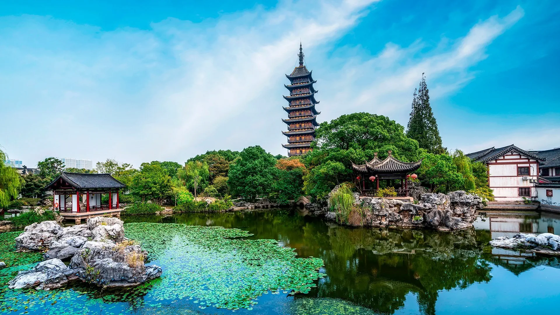 Śniadanie. Wykwaterowanie. Spacer w Ogrodzie Pokornego Zarządcy. Przejazd do LUZHI, „wodnej wioski”, malowniczo położonej niczym Wenecja pośród plątaniny kanałów, gdzie czas zatrzymał się dawno temu. Rejs łodziami po kanałach miasteczka. Czas wolny. Przejazd do SZANGHAJU. Spacer nadbrzeżną promenadą Bund. Fakultatywnie (za dodatkową opłatą na miejscu): wycieczka statkiem po rzece Huang Pu. Zakwaterowanie w hotelu, nocleg.