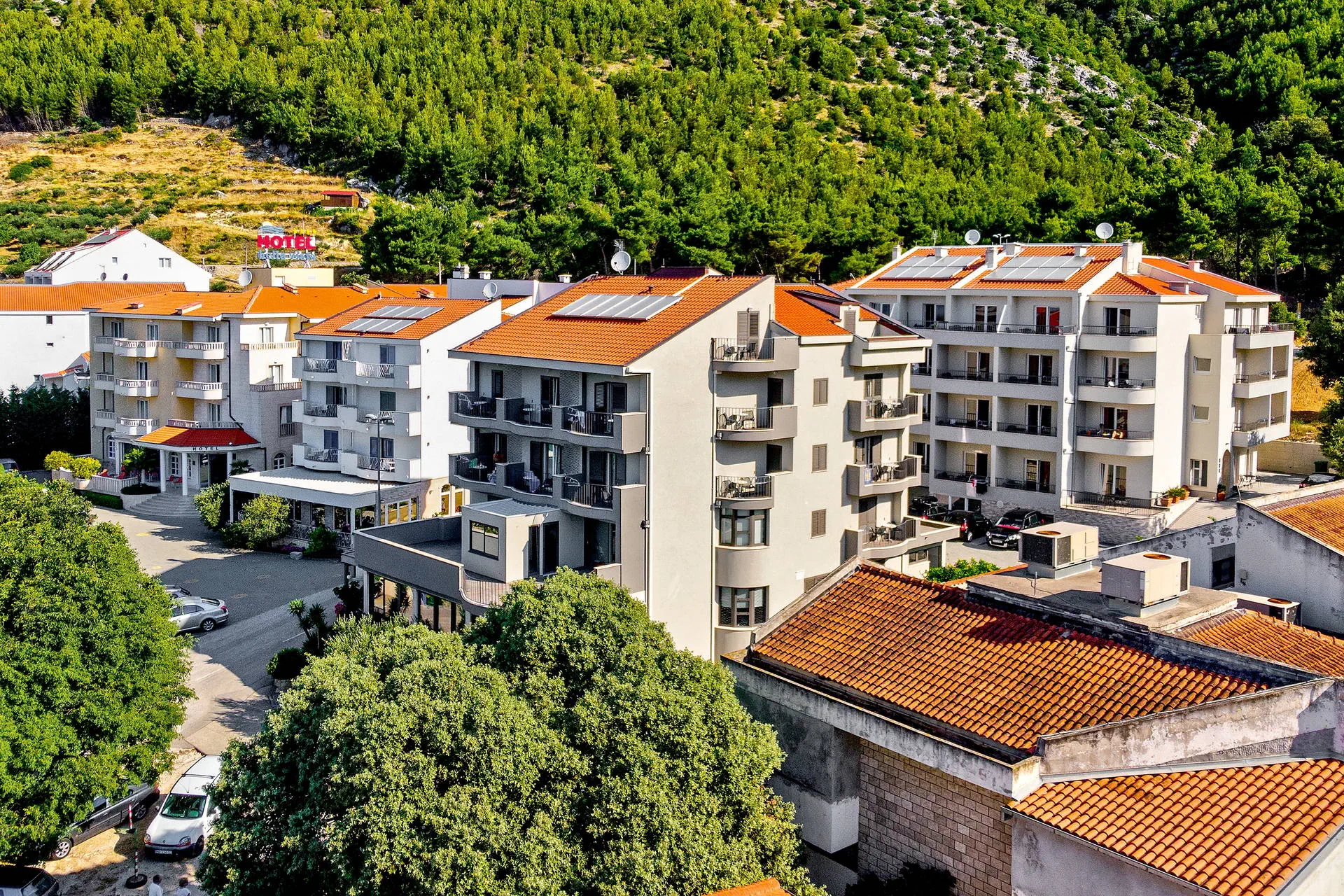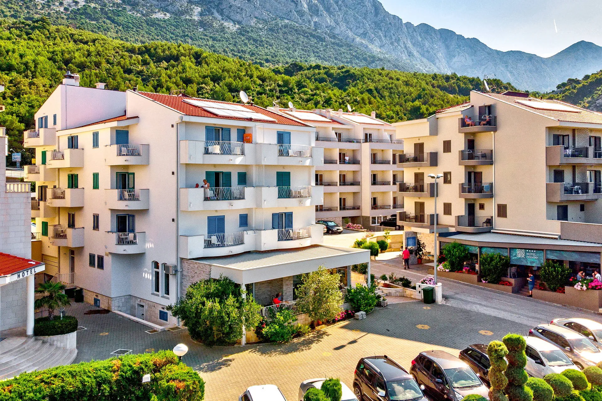 Drvenik, w którym znajduje się hotel Ivando, jest atrakcyjnym turystycznym miasteczkiem, położonym pomiędzy stromymi zboczami góry Biokovo a przepięknym wybrzeżem Makarskiej Riwiery. Miasto rozlokowało się w dwóch zatokach: Gornja Vala i Donje Vala. Hotel znajduje się w zatoce Gornja Vala, natomiast w części Donje Vala jest przystań promowa, z której, kilka razy dzienne odpływają promy do na Wyspę Korcula i Hvar. W pobliżu hotelu, przy plaży znajduje się promenada z wieloma atrakcjami turystycznymi, sklepami, kawiarniami, restauracjami. Drvenik położony jest w połowie drogi między Splitem a Dubrownikiem. Transfer zarówno z lotniska w Splicie, jak i z lotniska w Dubrowniku trwa ok 2 – 2,5 godziny.