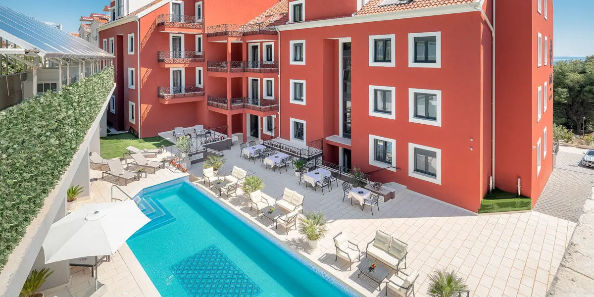 Hotel Cvita to nowo wybudowany 4-gwiazdkowy hotel rodzinny. Położony jest na południowych stokach wyrastającego tuż nad Starym Miastem wzgórza Marjan, otoczony gęstym lasem sosnowym oferuje zapierające dech w piersiach widoki na południe w kierunku otwartego morza. Spokojne otoczenie czyni z tego hotelu idealne miejsce na wypoczynek zarówno dla szukających czystego relaksu, jak i chcących zwiedzać czy cieszyć się świeżym powietrzem nad Adriatykiem. Udogodnienia: Basen kryty, SPA, Bar / restauracja, Siłownia, Klimatyzacja, Winda, Parking, Płatność kartąLokalizacja - Cvita