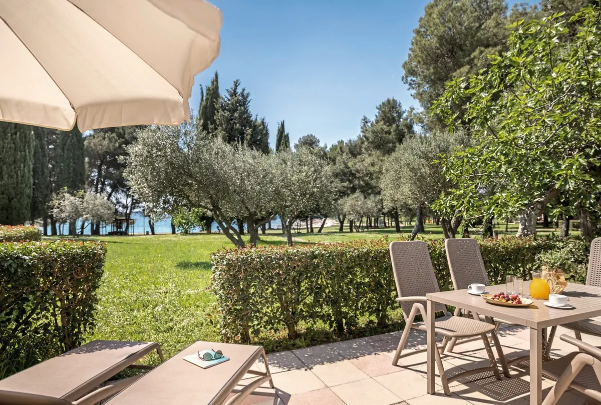 41-45 m², apartament, 2 oddzielne sypialnie, połączony pokój dzienny i sypialnia, łóżka podwójne (1 king size lub 1 łóżko podwójne), sofa, wanna, WC, suszarka do włosów, klimatyzacja, sejf, TV, Wi-Fi, aneks kuchenny, ekspres do kawy, lodówka, balkon lub taras, zmiana pościeli (2 x w tygodniu), zmiana ręczników (2 x w tygodniu)Wyżywienie - Villas Rubin Depadance