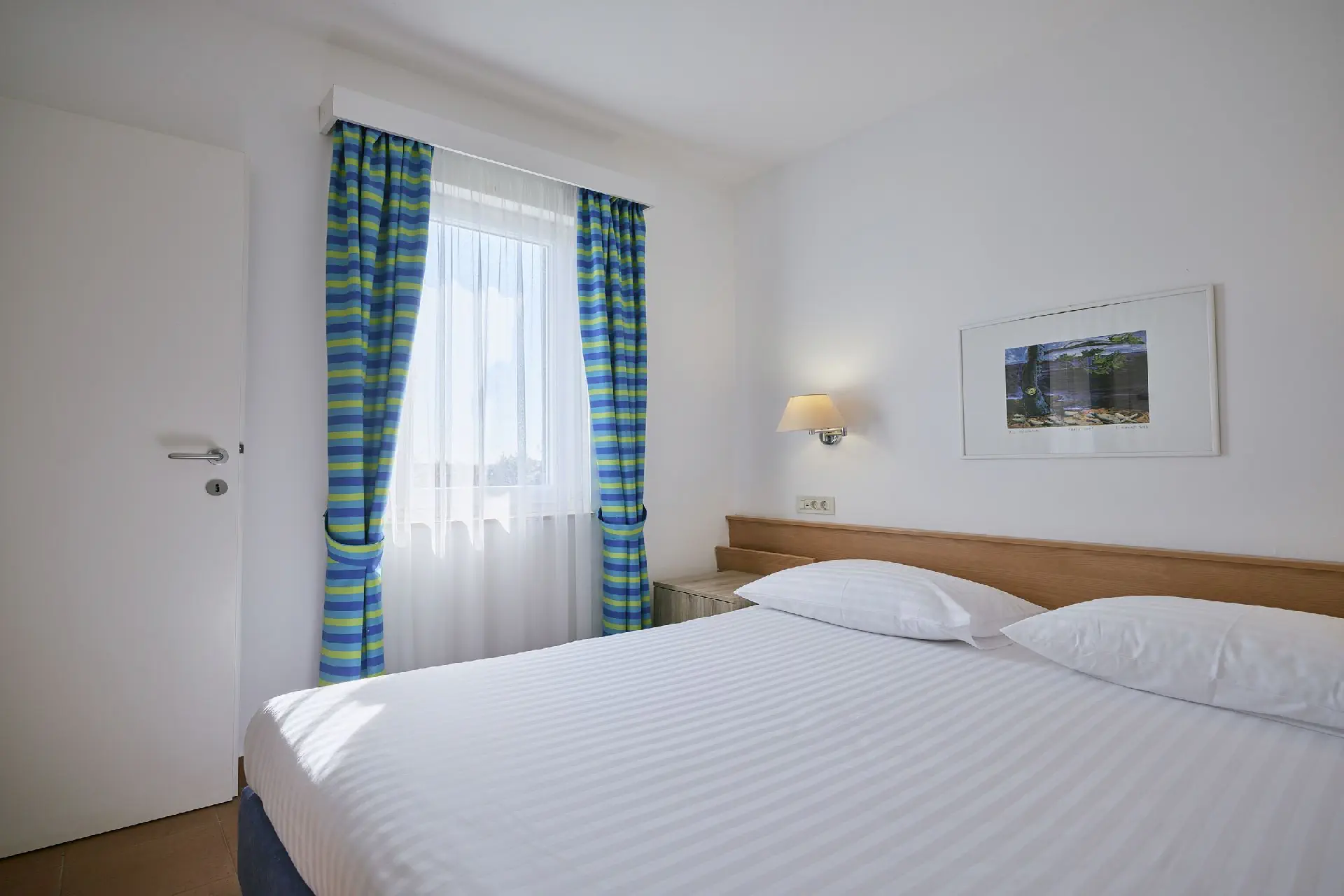 ok. 32-35 m2, klimatyzacja, internet WiFi (w cenie), sypialnia dla 2 osób, pokój dzienny z rozkładaną sofą do spania dla 2 osób, aneks kuchenny, sejf (w cenie), LCD SAT-TV, telefon (odpłatnie), suszarka do włosów, łazienka/WC, balkon lub loggia.W cenie - Naturist Koversada Park Apartments