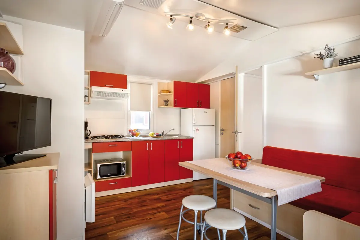26-30 m², mobilhome, 2 oddzielne sypialnie, połączony pokój dzienny i sypialnia, 2 pojedyncze łóżka, łóżko podwójne, 2 łazienki, prysznic, WC, klimatyzacja, TV, aneks kuchenny, taras < 10 m² (zadaszony), 1 miejsce parkingowe na jednostkę mieszkalną, pościel w cenie, zmiana pościeli płatne, ręczniki w cenie, zmiana ręczników płatne, tekstylia kuchenne należy zabrać ze sobą, koszt energii (bezpłatne), sprzątanie końcowe (już w cenie całkowitej)Marine Home für 4+2 (CB5) - Padova Premium Camping Resort By Valamar