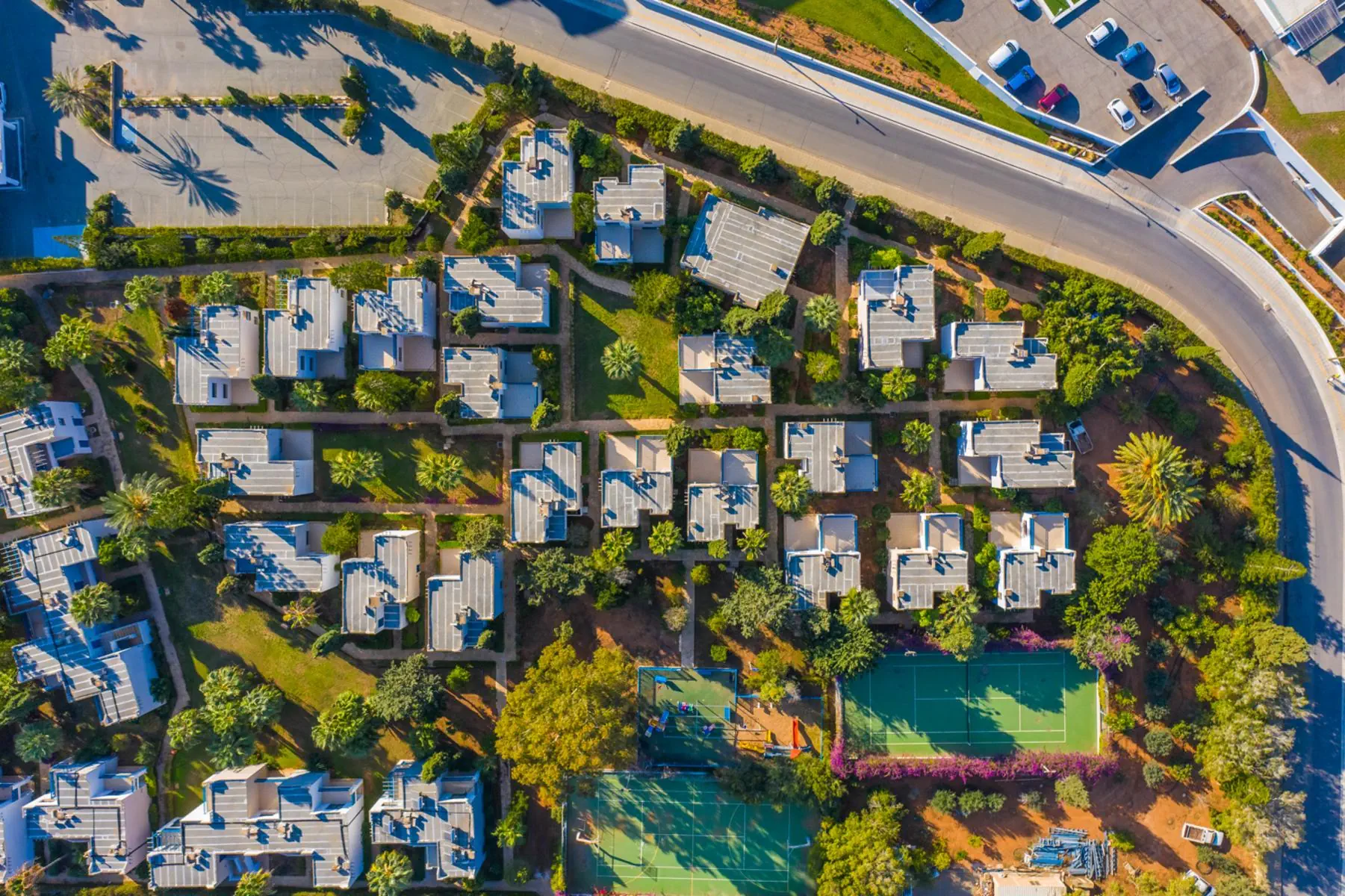Apartamenty w jednopiętrowych budynkach otoczonych śródziemnomorską roślinnością. Dogodna lokalizacja blisko plaży.Położenie - MarisMare Apartments
