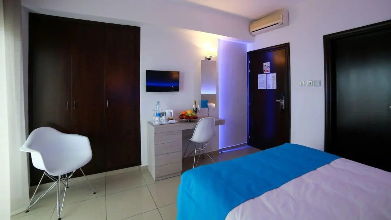 Les Palmiers oferuje szeroki zakres udogodnień, które uprzyjemniają pobyt każdemu gościowi. Na terenie hotelu dostępne jest: bezpłatne Wi-Fi, recepcja 24h, przechowalnia bagażu, usługi pralni (za dodatkową opłatą), możliwość wynajmu samochodu lub roweru.POKOJE - Les Palmiers (Larnaka)