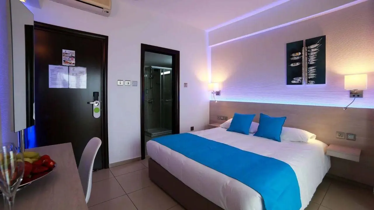 Hotel oferuje kilka kategorii komfortowych i nowocześnie urządzonych pokoi, które zaspokoją potrzeby zarówno par, rodzin, jak i większych grup. Wnętrza utrzymane są w jasnej, eleganckiej kolorystyce, z nowoczesnym wyposażeniem i dużą dbałością o czystość. Część pokoi posiada balkony z przepięknym widokiem na Morze Śródziemne oraz promenadę Finikoudes. Dostępne typy zakwaterowania obejmują: pokoje dwuosobowe typu Twin lub Double z widokiem na okolicę lub morze, Każdy pokój wyposażony jest w klimatyzację, telewizor z płaskim ekranem, sejf, zestaw do parzenia kawy i herbaty, lodówkę, łazienkę z prysznicem i suszarką do włosów, a także bezpłatne Wi-Fi.WYŻYWIENIE - Les Palmiers (Larnaka)