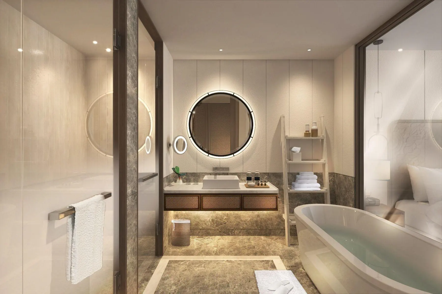 Pokoje wyposażone są w klimatyzację, centralne ogrzewanie i łazienkę. Większość pokoi posiada balkon z widokiem na okolicę. Wyłożone wykładziną pokoje wyposażone są w łóżko typu king size oraz sofę. Opcjonalnie dostępne są oddzielne sypialnie. Ponadto skorzystać można z sejfu i minibarku. Komfortowy pobyt zapewniają lodówka i ekspres do kawy / herbaty. Kolejnym udogodnieniem jest prasa do spodni. Elementami podwyższającymi komfort pobytu są internet, telefon, telewizor i Wi-Fi (bezpłatnie). W pokojach znajdziecie Państwo ponadto obuwie domowe oraz prasę. Łazienki wyposażone są w prysznic i wannę. W łazience znajduje się suszarka do włosów, lusterko kosmetyczne i szlafroki. Istnieje również możliwość rezerwacji kwatery z łazienką dla osób niepełnosprawnych. Hotel oferuje pokoje rodzinne i pokoje dla niepalących.Oferta sportowo-rozrywkowa - City Of Dreams Mediterranean