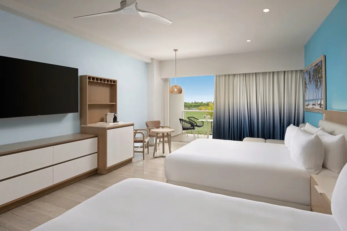 36-40 m², podwójny, widok na ogród, kącik wypoczynkowy, łóżka podwójne (1 łóżko king size lub 2 łóżka queen size), zestaw prysznicowy, WC, suszarka do włosów, lusterko kosmetyczne, klimatyzacja, minibar, sejf, TV, balkon lub taras (umeblowany)Deluxe Garden View (UDG) - Margaritaville Island Reserve Cap Cana Hammock