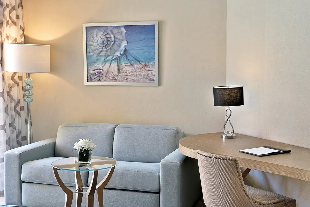 31-35 m², podwójny, budynek główny, od strony morza, widok na morze, biurko, kanapa, łóżka podwójne (1 łóżko typu queen size lub 1 łóżko podwójne), prysznic, wanna, suszarka do włosów, klimatyzacja, minibar płatne, sejf, TV, kawa/herbataDoppelzimmer Superior Meerblick (DSM/DC2) - Hilton Plaza (Hurghada)