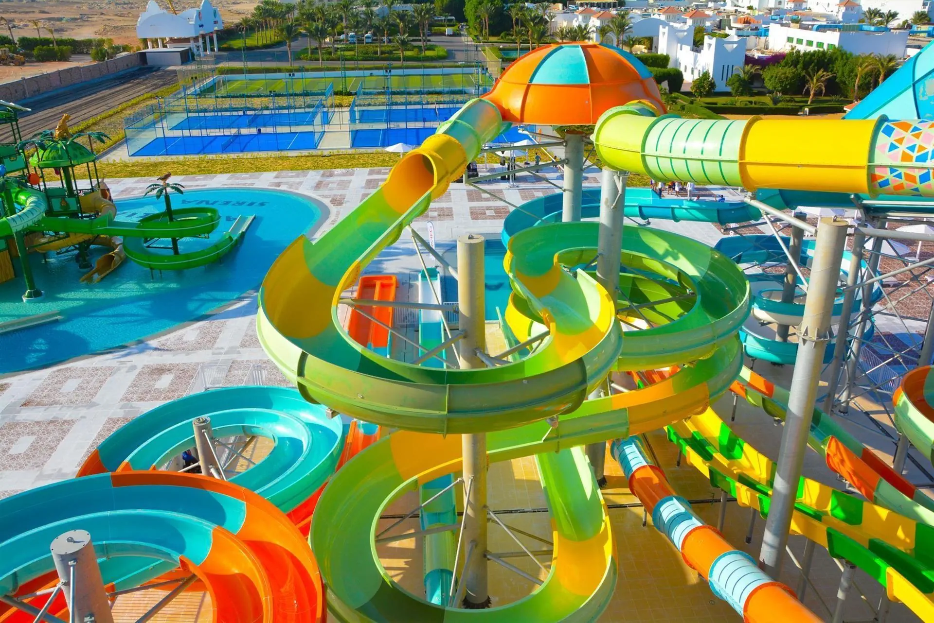 **Godziny pracy aquaparków oraz zjeżdżalni określane są indywidualnie przez hotel. Najczęściej są one czynne 2-3 godziny przed obiadem/lunchem oraz 2-3 godziny po południu.