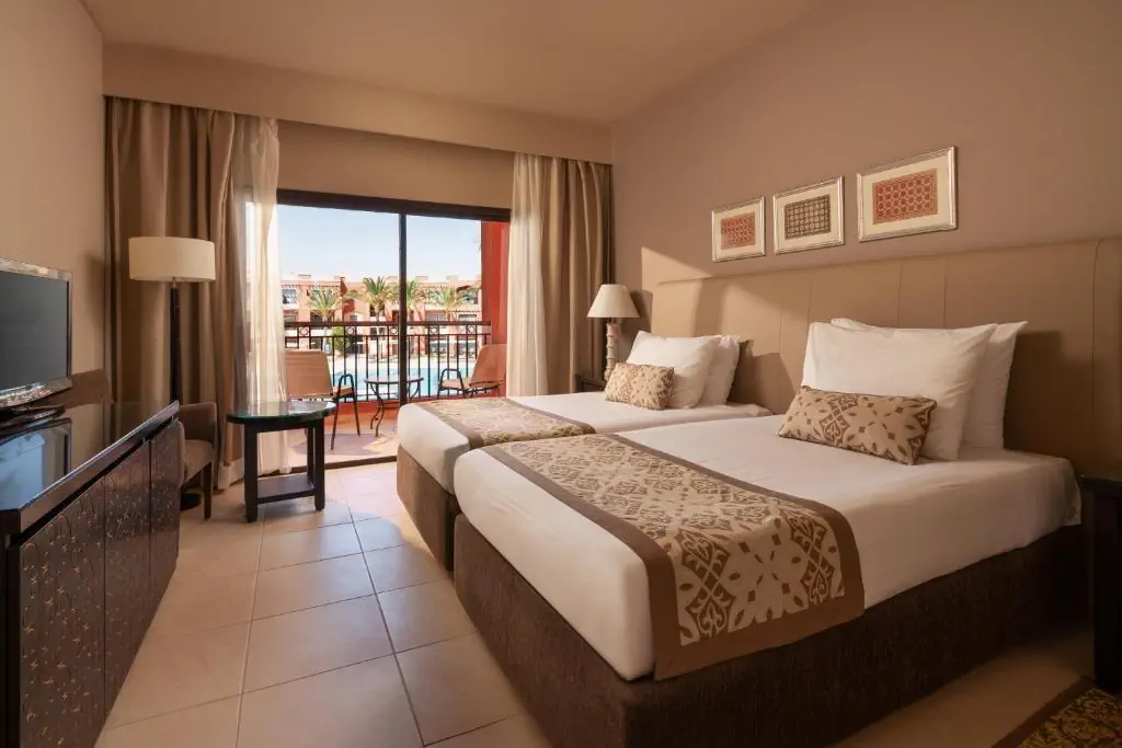 Dla max. 3 osób, Przestrzeń zewnętrzna: Balkon, Telefon w pokoju, wanna lub prysznic , Powierzchnia pokoju: ok. 30 - 34 m2, Rodzaj podłogi: płytki, Sprzątanie codziennie, 1 sypialnia, Maksymalna liczba osób dorosłych: 2, Maksymalna liczba dzieci: 1, Widok na ogród,Widok na basen, Liczba łazienek: 1, Liczba toalet: 1, Zestaw do parzenia kawy i herbaty, Klimatyzacja: Klimatyzacja centralnaFamily, Queen Bed, Garden Or Pool View - Hotel: Hotel Jaz Tamerina