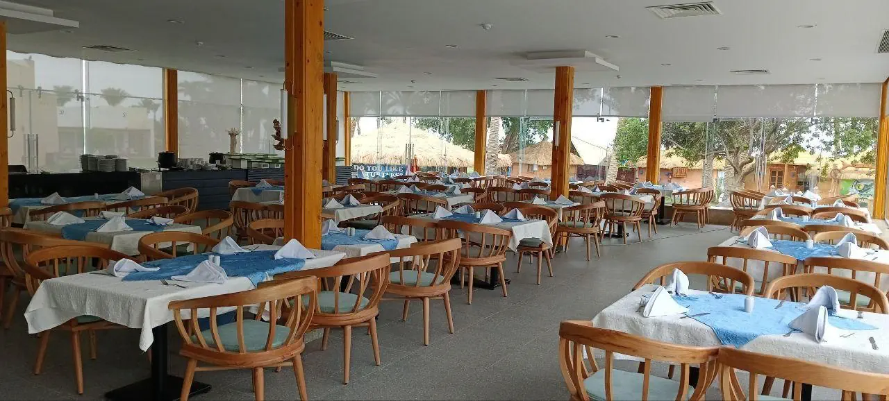 Restauracje i bary: * restauracja główna Lagoon - bufet * restauracja a la carte Barracuda - owoce morza * Lagoon Bar * Sunset Bar * Sultan Bar System żywnościowy: * Śniadania i Obiadokolacje * All Inclusiveśniadanie w restauracji głównej 07:00 - 10:00 (bufet) * obiad w restauracji głównej 13:00 - 15:00 (bufet) * kolacja w restauracji głównej 19:00 - 22:00 (bufet) * lokalne napoje alkoholowe i bezalkoholowe serwowane są od 11:00 do 23:00:Lagoon Bar: 11:00 - 17:00 * Sunset Bar: 11:00 - 17:00 * Sultan Bar: 17:00 - 23:00 * napoje w cenie: lokalne piwo, woda i napoje gorące (herbata, Nescafe, kawa Americano), napoje bezalkoholowe, lokalne alkohole i wybór koktajli na ich bazie * restauracja a la carte za opłatą * obowiązują opaski AIWażne - Dahab Lagoon Resort (ex Tirana Dahab Resort)