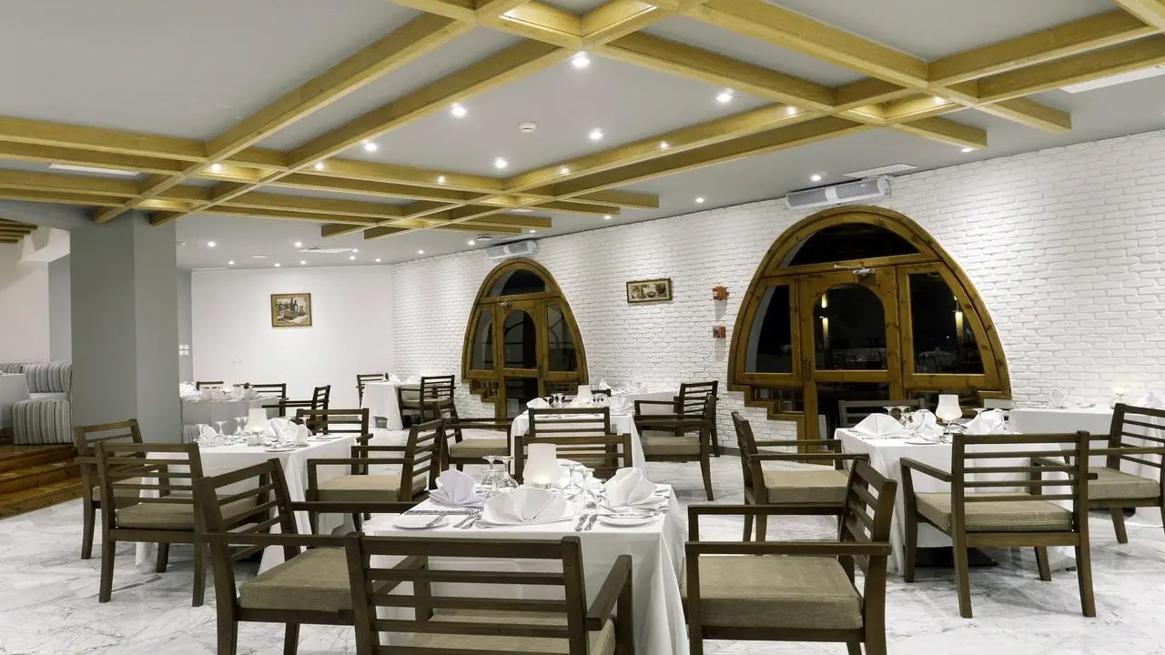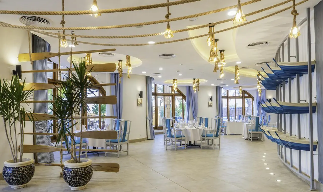 Restauracje i bary: * restauracja główna Flavors * restauracja włoska Portofino (za opłatą) * Island Café & Bar * restauracja Catch Seafood - owoce morza (za opłatą) * Sunset Lounge * Horizon Pool Bar * Yaal Beach Club System żywnościowy: * Śniadania i Obiadokolacje * All inclusiveśniadanie w restauracji głównej 07:00 - 10:00 (bufet) * obiad w restauracji głównej 13:00 - 15:00 (bufet) * przekąski 10:30 - 11:30 i 15:30 - 17:00 w Yaal Beach Bar oraz 23:00 - 00:00 w Island Café & Bar * kolacja w restauracji głównej 19:00 - 21:30 (bufet) * lody 16: 00- 17:00 w Yaal Beach Bar * napoje w cenie: napoje bezalkoholowe, woda mineralna, soki owocowe, kawa filtrowana, espresso, cappuccino, herbata, lokalne piwo, koktajle z lokalnymi alkoholami (whisky, gin, wódka i rum) * lokalne napoje alkoholowe i bezalkoholowe w cenie od 10:00 do 00:00 * lokalne wino serwowane tylko do obiadu i kolacji * za opłatą: świeżo wyciskane soki, kawa po turecku, importowane alkohole i koktajle na ich bazie, piwo bezalkoholowe, wybrane drinki, wino musujące i szampan, restauracje a la carte, shisha * 1 butelka wody dziennie na osobę w pokojuWażne - Safir Dahab Resort