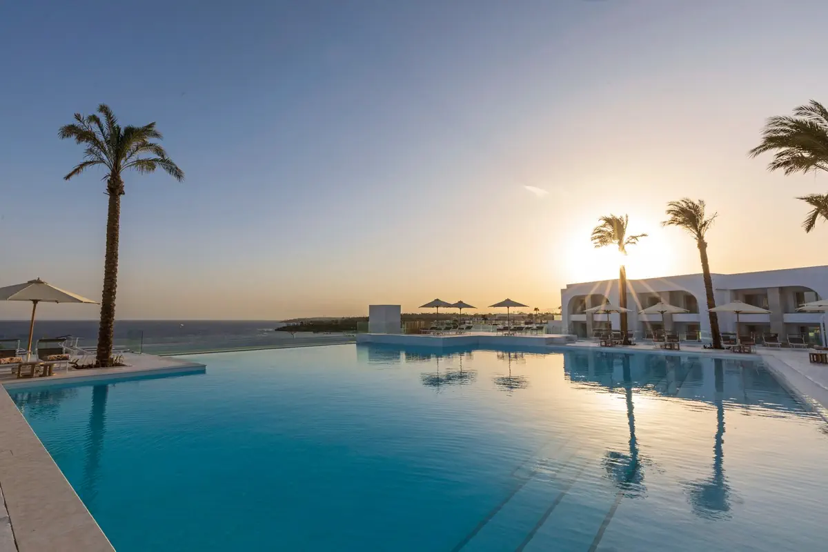 41-45 m², podwójny, deluxe, przy plaży, widok na morze, kącik wypoczynkowy, łóżka podwójne (1 łóżko podwójne lub 2 łóżka pojedyncze), otwarta łazienka w pokoju, prysznic lub wanna, whirlpool, szlafrok kąpielowy, kapcie kapielowe, suszarka do włosów, lusterko kosmetyczne, klimatyzacja, minibar, wypełnienie codziennie, napoje bezalkoholowe, piwo, woda, sejf, TV, czajnik, kawa/herbata, balkon lub taras (umeblowany), menu poduszkowe, nocny serwis turkusowyDoppelzimmer Deluxe Swim Up (DDQ,DCQ) - Sunrise White Hills Resort