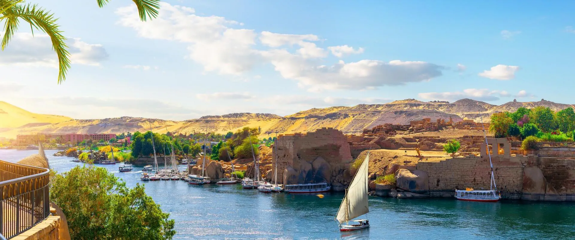 Zwiedzanie Asuanu – przejazd do kamieniołomów, gdzie znajduje się słynny niedokończony obelisk królowej Hatszepsut. Następnie wizyta wyspie Phile, w pochodzącej z epoki hellenistycznej świątyni bogini Izydy. Obiekt ten, podobnie jak świątynie w Abu Simbel, został ocalony od zatopienia w ramach wielkiej międzynarodowej operacji archeologicznej pod patronatem UNESCO. Po południu rejs felukką po Nilu do Ogrodów Kitchener’a – pięknego ogrodu botanicznego założonego przez brytyjskiego wojskowego. Felukka to tradycyjna łódź żaglowa, stanowiąca nieodłączny element krajobrazu na południu Egiptu. Rejs łodzią motorową do wioski nubijskiej, w której swoje domy zbudowali Nubijczycy wysiedleni z terenów poznaczonych na zalanie wodami Jeziora Nasera w latach 70-tych XX wieku po wybudowaniu Tamy Asuańskiej. Nocleg na statku.
