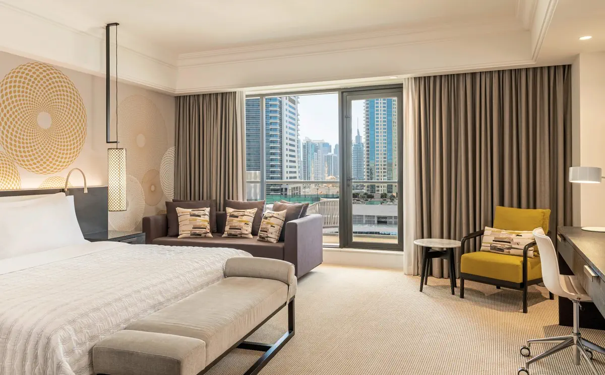 36-40 m², podwójny, budynek boczny, budynek główny, widok na morze (częściowy boczny), wyremontowany, przystosowane dla niepełnosprawnych (pokój na zapytanie), kącik wypoczynkowy, biurko, wanna, WC, szlafrok kąpielowy, kapcie kapielowe, suszarka do włosów, lusterko kosmetyczne, wykładzina dywanowa, klimatyzacja, minibar płatne, sejf, deska do prasowania, żelazko, TV, Wi-Fi, czajnik, kawa/herbataRoyal Club Tower JBR Facing Room (UL1) - Le-Royal-Meridien-Beach-Resort-Spa-Dub