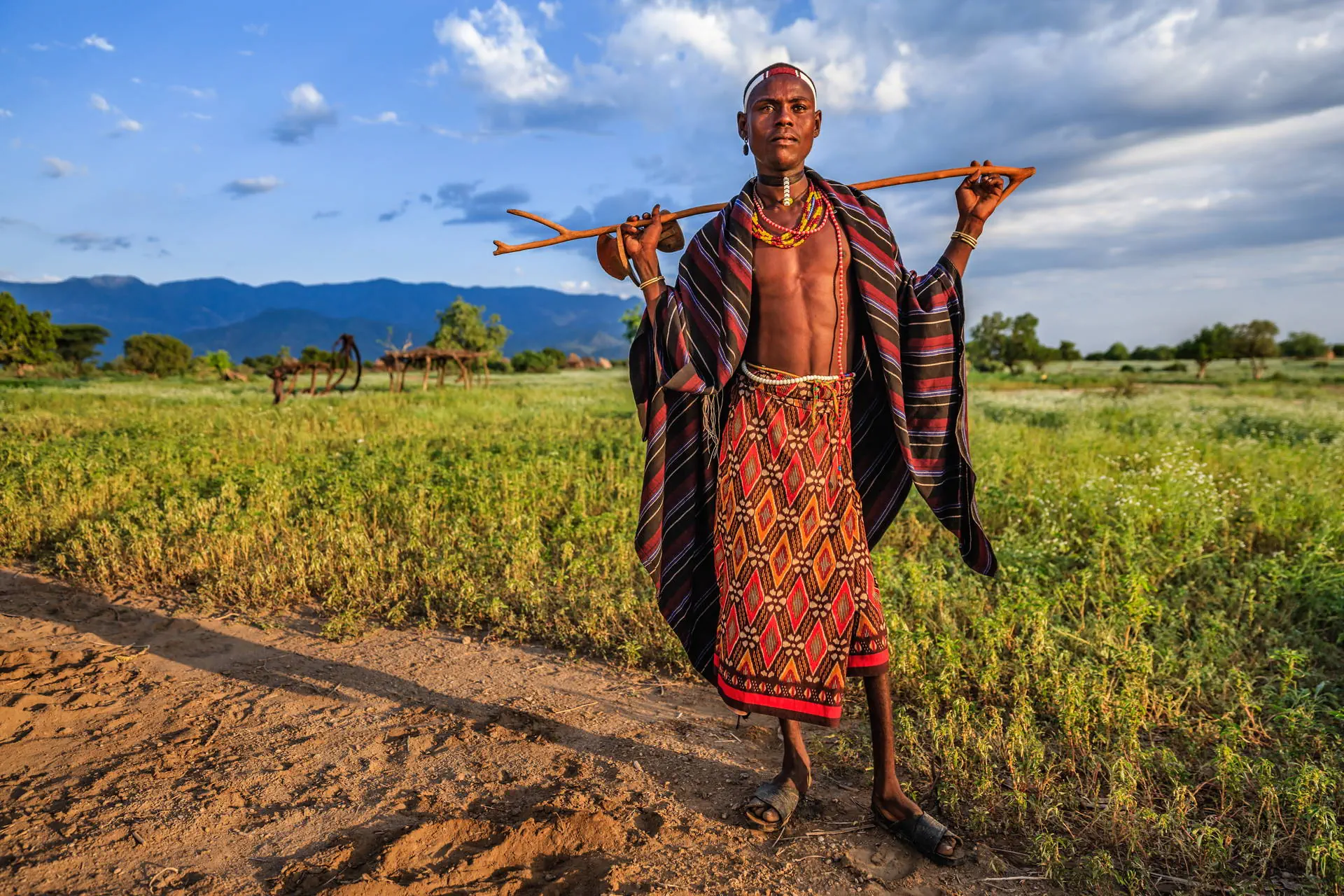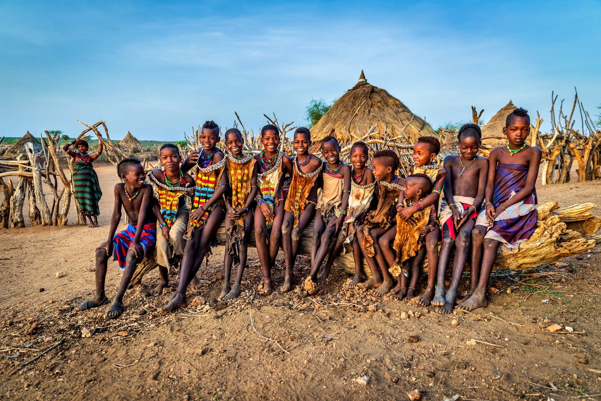 Po śniadaniu przejazd w kierunku Kenii do Omorate. Czeka nas przeprawa na drugi brzeg rzeki Omo w charakterystycznych, dłubanych łódkach. Wizyta we wsi żyjącego najdalej na południu ludu Etiopii. Plemię Dasenech zamieszkuje deltę rzeki wpływającej do jeziora Turkana. Bardzo specyficzne tatuaże i zdobienie skóry stworzone poprzez nacinanie odróżniają ich od pozostałych plemion Południa. Przerwa na lunch i powrót. Wizyta we wsi plemienia Hamer. Charakterystycznym obrzędem u Hamerów jest święto inicjacji młodych mężczyzn. Odpowiednio przygotowani chłopcy muszą przebiec po grzbiecie kilkunastu par bydła. Skoki przez byki nie są przedstawieniem dla turystów, nie można ich zamówić ani zorganizować. Ale już wielokrotnie naszym grupom udało się uczestniczyć w tej niesamowitej ceremonii. (udział w ceremonii dodatkowo płatny ok. 30 USD/os.). Kolacja i nocleg w lodge w Turmi. (Trasa ok. 120 km po szutrowych drogach).