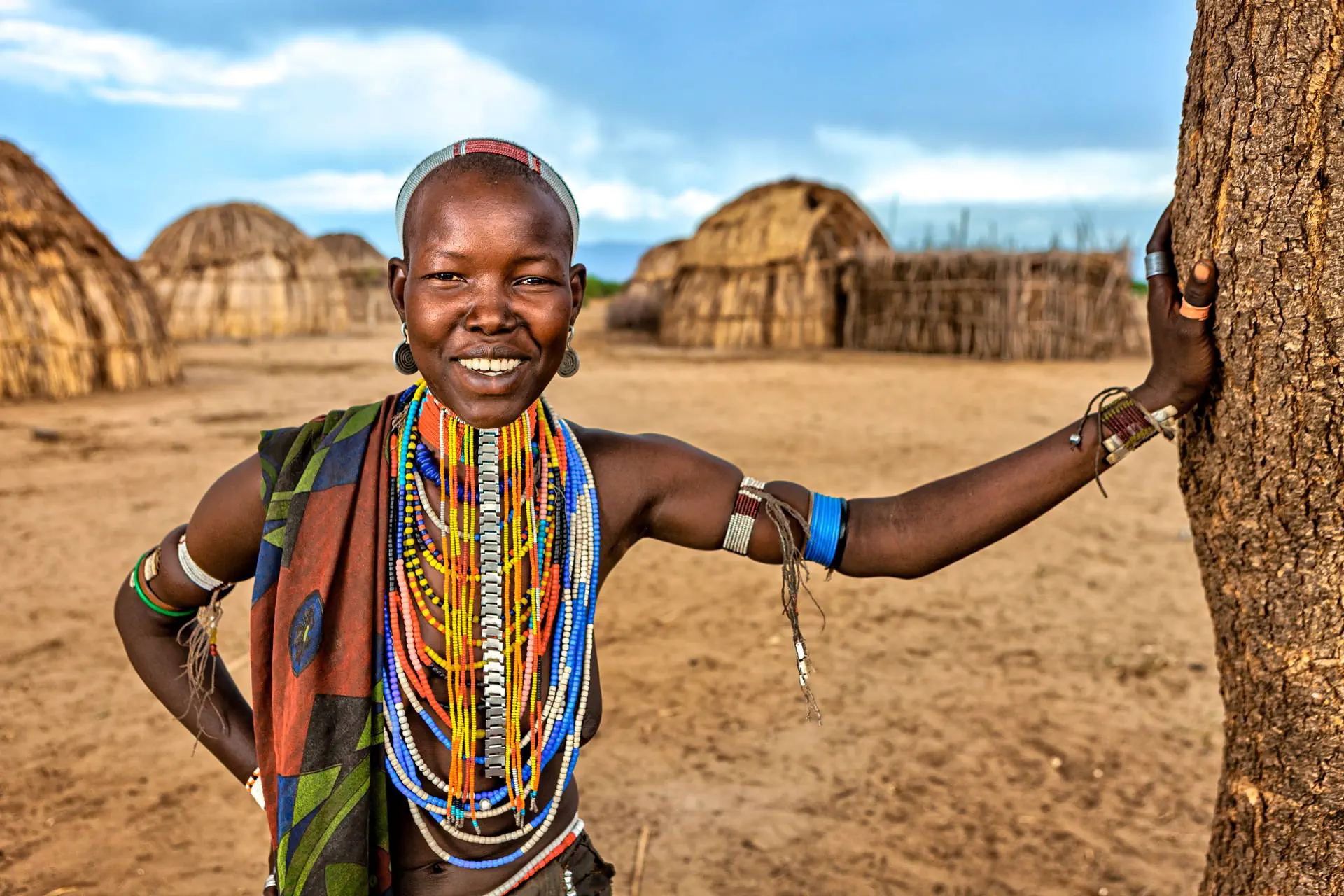 Po śniadaniu wycieczka do wsi plemienia Mursi. Mursi to najbardziej rozpoznawalne plemię z ludów zamieszkujących dolinę rzeki Omo. Wkraczającym w dorosłe życie kobietom Mursi rozcina się dolną wargę i umieszcza się w niej gliniany lub rzadziej drewniany krążek. Krążki wymienia się na coraz większe, najbardziej okazałe mają nawet 35 cm średnicy. Wielkość krążka i innych ozdób, których nie brakuje na całym ciele stanowią o atrakcyjności kobiety i jej wartości (narzeczony musi odpowiednio zapłacić rodzinie za przyszłą żonę). Mężczyźni z tego plemienia dekoracyjnie malują ciała, ich twarze najczęściej pokrywają białe wzory. Do wsi Mursich z Dżinka jest 40 km, jedzie się ok. 2 godz. Powrót do Dżinka na lunch. Przejazd do Turmi. Przerwa na lunch w ciągu dnia, kolacja, nocleg w Buska, Turmi lub Emerald lodge.