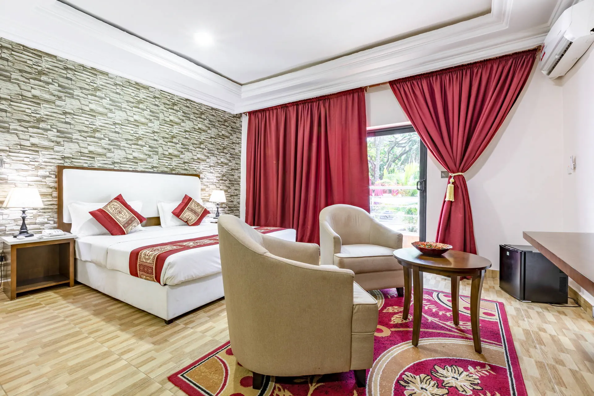 Hotel otoczony tropikalną zielenią oferuje zakwaterowanie w 72 przestronnych pokojach, rozmieszczonych w kilku 2-kondygnacyjnych budynkach. Każdy pokój komfortowo urządzony i wyposażony w łazienkę (prysznic, wc, suszarka do włosów), klimatyzację sterowaną indywidualnie, umeblowany balkon lub taras , TVsat, minibar (płatny), telefon, sejf, zestaw do przyrządzania kawy i herbaty. Pokoje typu standard dla 2 osób, z możliwością 1 dostawki dla osoby dorosłej lub dziecka, łóżka pojedyncze typu twin.