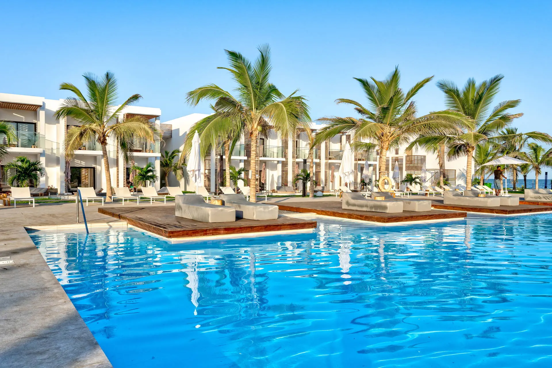 Plaża bezpośrednio przy hotelu. Piaszczysta, szeroka, z łagodnym zejściem do oceanu, z wydzieloną częścią dla Gości obiektu. Leżaki i parasole bezpłatne, ręczniki kąpielowe bezpłatne.