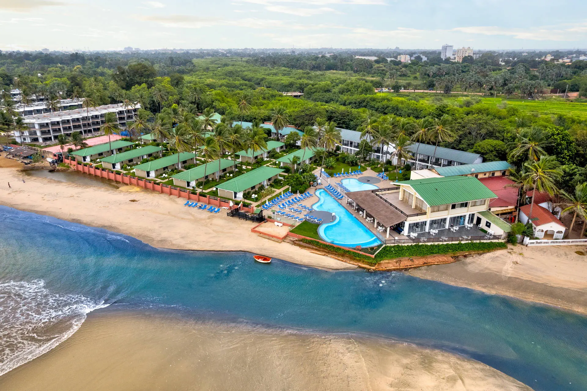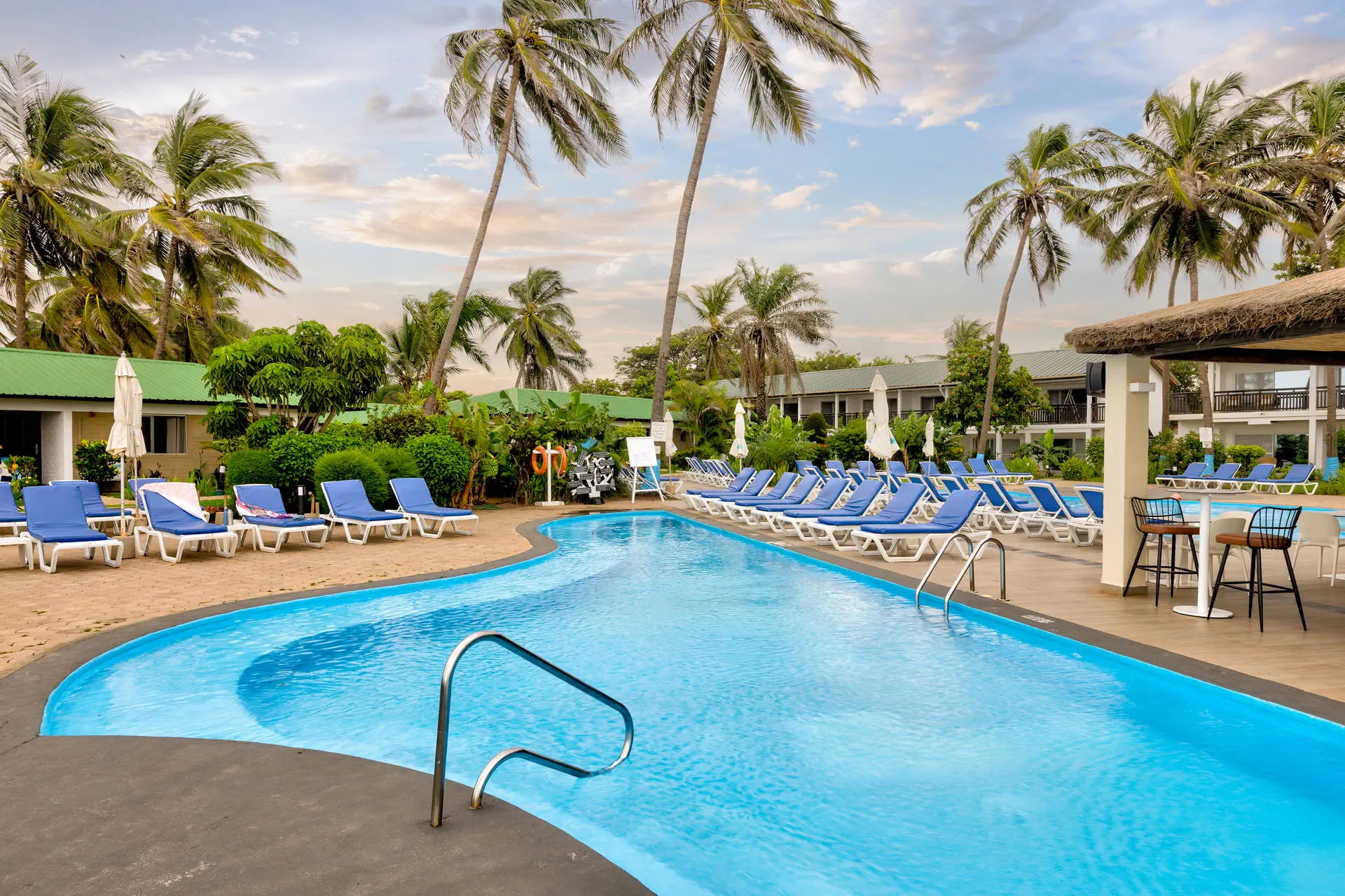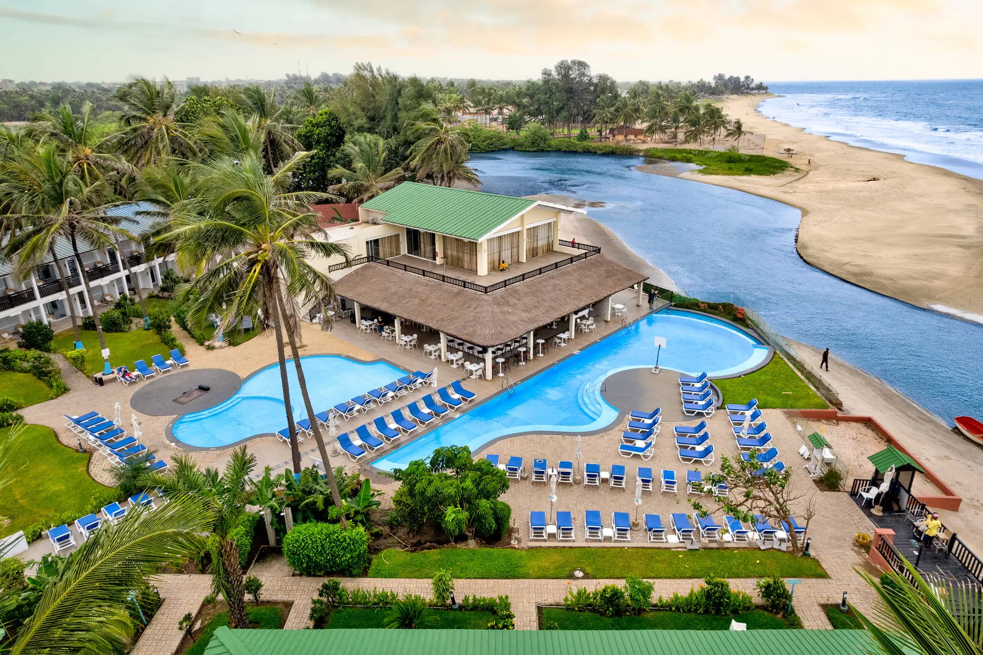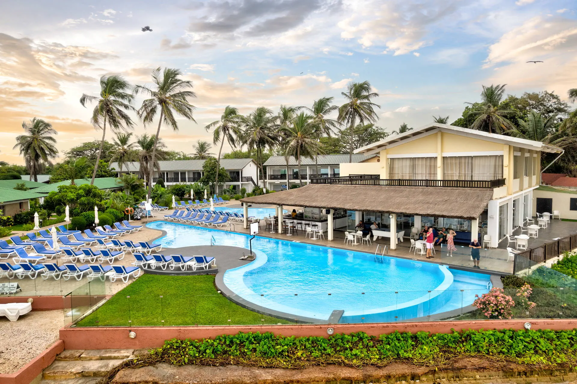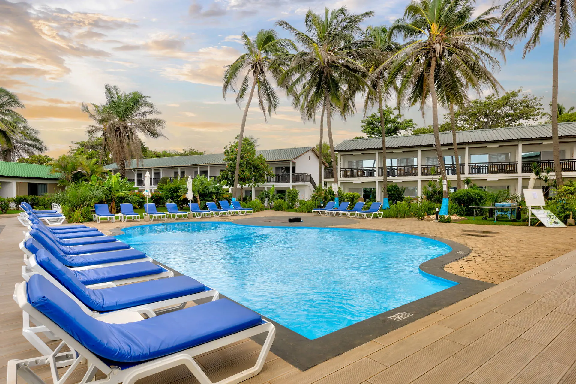 Odległość od lotniska wynosi około 20 km, a transfer trwa około 40 minut. Obiekt usytuowany jest niedaleko centrum handlowego Bengdula w miejscowości Kotu oraz pola golfowego z 18 dołkami. Hotel otoczony jest egzotycznym ogrodem, składa się z kilku niewysokich budynków usytuowanych wokół basenu. Całość terenu dopełniają doskonale wkomponowane palmy, tropikalne drzewa i mnóstwo kwiatów. Położony w cichej okolicy, sprzyjającej spacerom i obserwacji licznych gatunków ptaków.