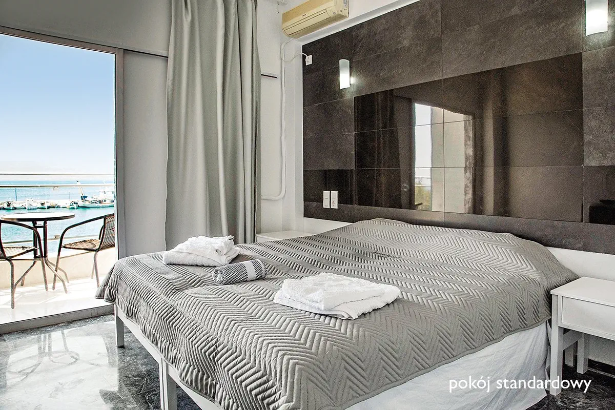 standardowy - 2-os. (możliwość 1 dostawki) - ok. 14 m² - indywidualnie sterowana klimatyzacja - łazienka (prysznic, wc, suszarka) - internet bezprzewodowy - telewizor - telefon - lodówka - balkon (stolik i krzesełka) - widok na basen - za opłatą: sejf (ok. 14 EUR/tydz.) deluxe - 2-os. (możliwość 1 dostawki) - ok. 18 m² - indywidualnie sterowana klimatyzacja - łazienka (prysznic, wc, suszarka) - internet bezprzewodowy - telewizor - telefon - lodówka - balkon (stolik i krzesełka) - widok na basen - za opłatą: sejf (ok. 14 EUR/tydz.)Wyżywienie - Porto Evia Boutique