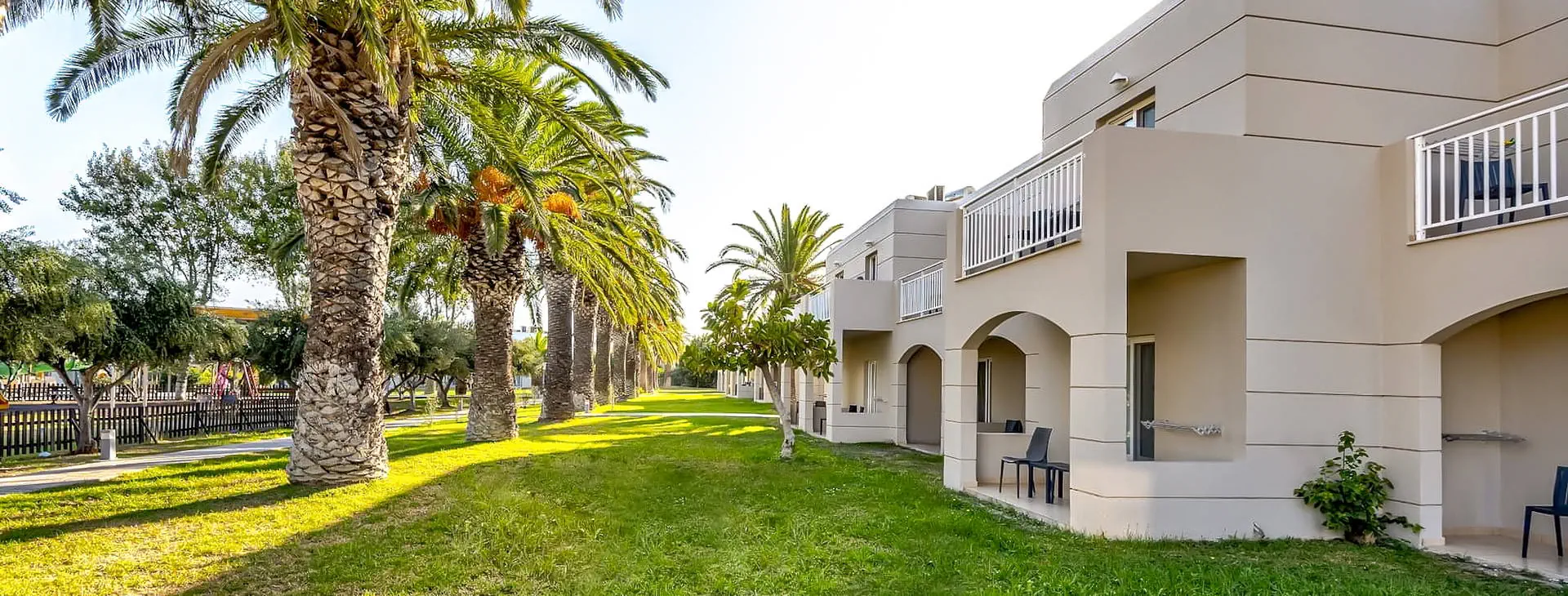 E Geo Easy Living Resort, to kompleks składający się głównie z bungalowów. W obiekcie znajduje się 341 komfortowych pokoi i apartamentów (od 25 do 50m2 dla 2-4 osób) z widokiem na morze, ogród i basen. Pokoje jasne i przestronne w stylu boho chic wyposażone w łóżko typu queen-size lub king-size, prywatne balkony lub tarasy, łazienki oraz ekspres do kawy.