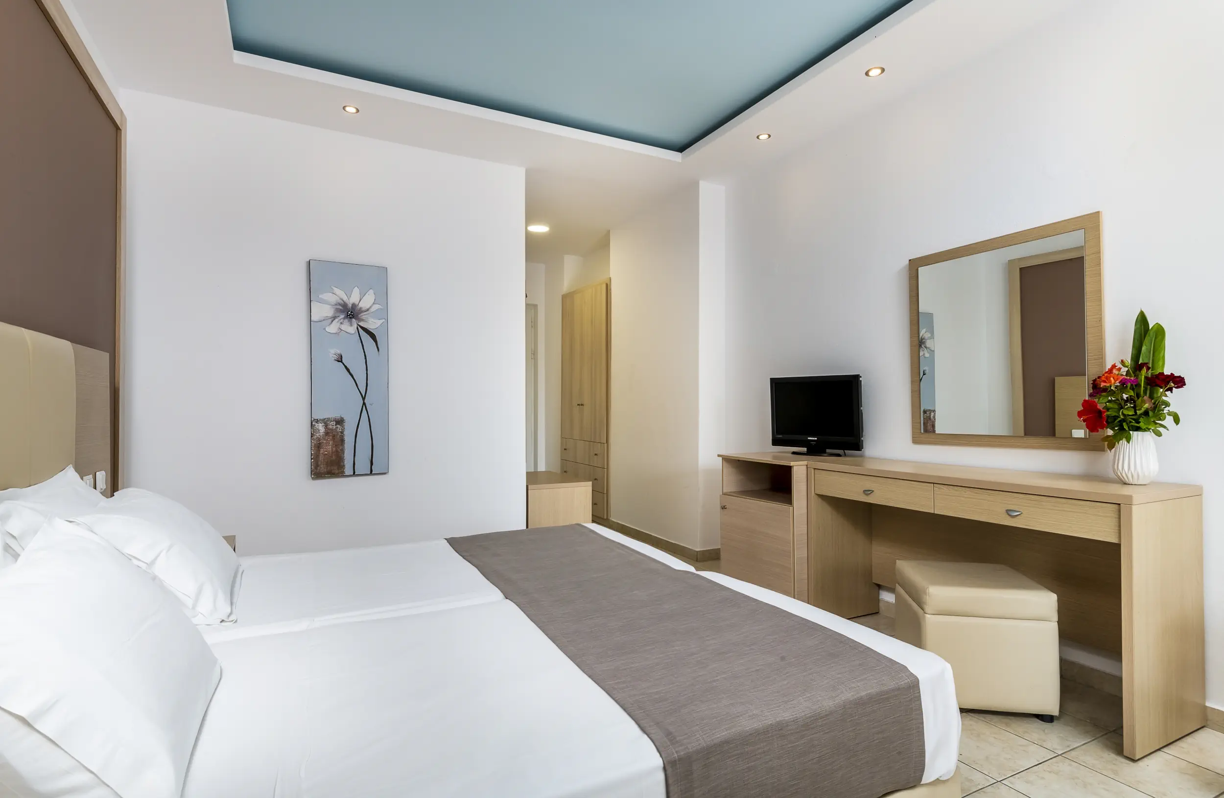 Dla max. 3 osób, Przestrzeń zewnętrzna: Balkon lub taras, Kanały telewizji: Polski, Angielski, Telefon w pokoju, prysznic, Powierzchnia pokoju: ok. 25 m2, Dostawka: łóżko rozkładane, Rodzaj podłogi: płytki, Sprzątanie codziennie, 1 sypialnia, Maksymalna liczba osób dorosłych: 3, Maksymalna liczba dzieci: 2, Od strony morza, Wyjście do wspólnego basenu, Liczba łazienek: 1, Liczba toalet: 1, Klimatyzacja: Klimatyzacja indywidualnaSUPERIOR FAMILY ROOM 2 BEDROOMS - Gaia Royal