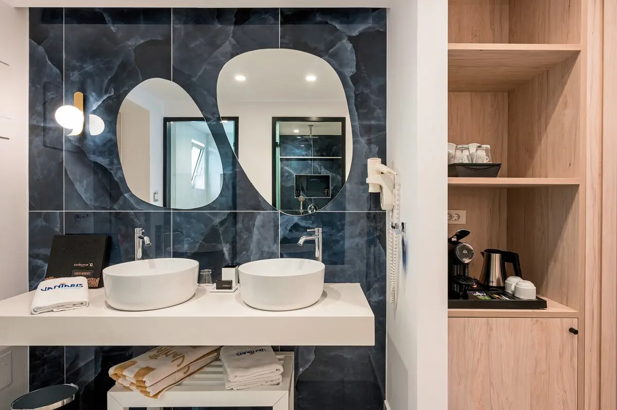 26-30 m², suita, dla niepalących , optycznie oddzielony salon/sypialnia, kącik wypoczynkowy, dwa łóżka, 1 łazienka, prysznic, WC, suszarka do włosów, lusterko kosmetyczne, płytki, klimatyzacja, sejf (płatne), 1 TV (satelitarna, programy niemieckojęzyczne, płaski ekran), Wi-Fi, płatne, lodówka, taras (umeblowany), bezpośrednie wejście do basenu, prywatny basenWyżywienie - Vantaris Palace