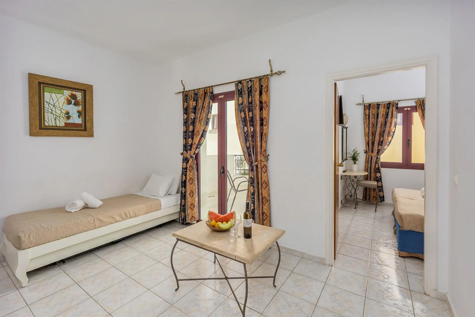 Pokoje Studio; ok. 25 m2, klimatyzacja, TV-SAT, sejf (płatny), aneks kuchenny, mini lodówka, czajnik, łazienka (WC, prysznic, suszarka), balkon,