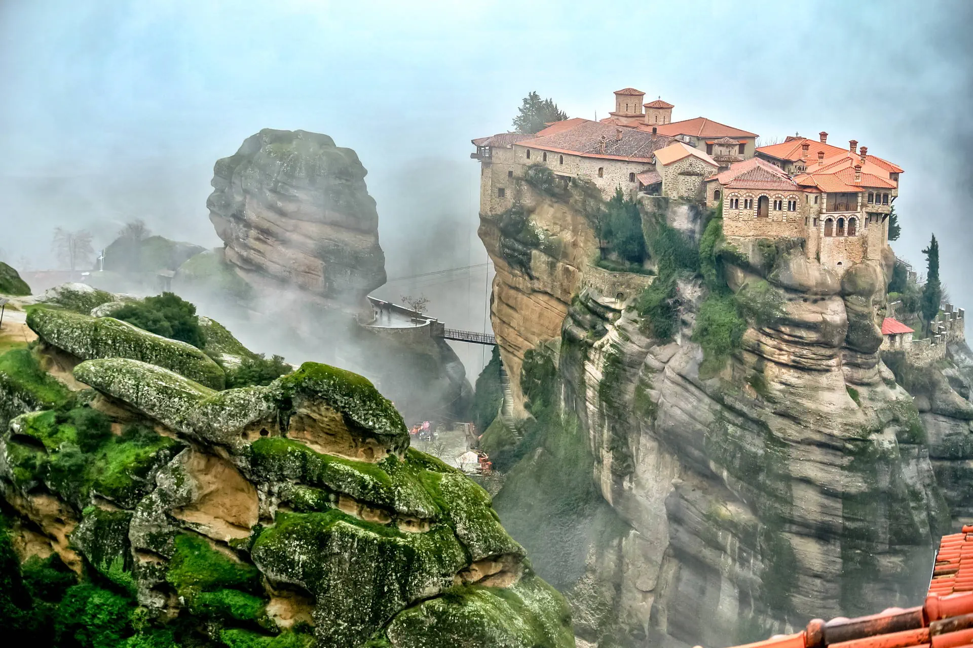 Po śniadaniu przejazd w kierunku Kalambaki. Po drodze przejedziemy przez potężny most Rio-Antirio, łączący Peloponez z kontynentalną częścią Grecji. Przyjazd do Kalambaki na zwiedzanie wiszących klasztorów Meteora, co znaczy „skały zawieszone w powietrzu”, uznane za jedną z najwspanialszych atrakcji turystycznych Grecji będącą na liście 100 cudów świata (konieczny odpowiedni strój: zakryte ramiona, panie długie spódnice, panowie długie spodnie), wizyta w wytwórni ikon bizantyjskich. Nocleg w Kalambace lub okolicach.