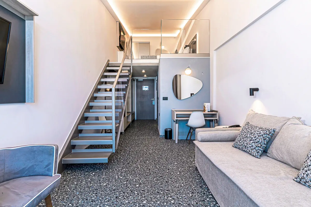 46-50 m², maisonette, 2 piętro, widok na ogród, optycznie oddzielony salon/sypialnia, łóżko podwójne, 2 sofa, 2 łazienki, prysznic lub wanna, WC, suszarka do włosów, klimatyzacja, indywidualnie sterowana, mini lodówka, sejf, 1 TV (satelitarna), kawa/herbata, lodówka, balkon lub tarasWyżywienie - Sentido Pearl Beach