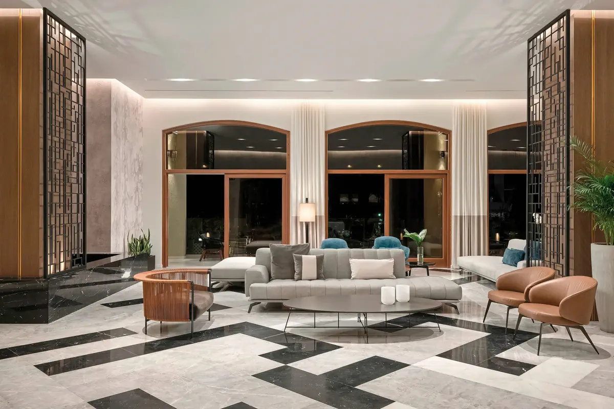 41-45 m², suita, wyremontowany, optycznie oddzielony salon/sypialnia (z drzwi przesuwne), połączony pokój dzienny i sypialnia, łóżko podwójne (queen size), 2 sofa, 1 łazienka, prysznic, WC, szlafrok kąpielowy, kapcie kapielowe, suszarka do włosów, płytki, klimatyzacja, mini lodówka, sejf (płatne), 1 TV (satelitarna, programy niemieckojęzyczne, płaski ekran), Wi-Fi, kawa/herbata, lodówka, taras (umeblowany), bezpośrednie wejście do basenuWyżywienie - Theartemis Palace
