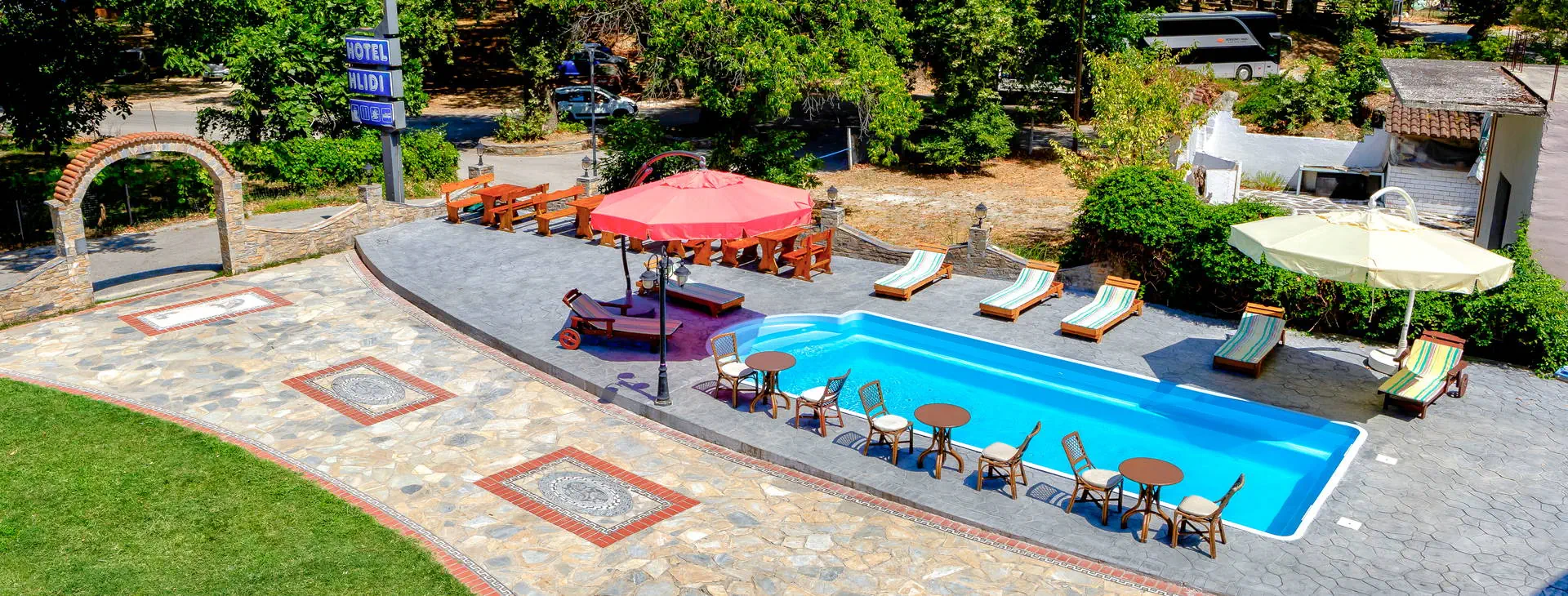 1 basen dostępny dla Gości hotelu, leżaki i parasole przy basenie bezpłatnie dla Gości hotelowych. Restauracje: restauracja, bar na terenie hotelu. Zadbany ogród, taras. Obiekt został odnowiony w 2025r.