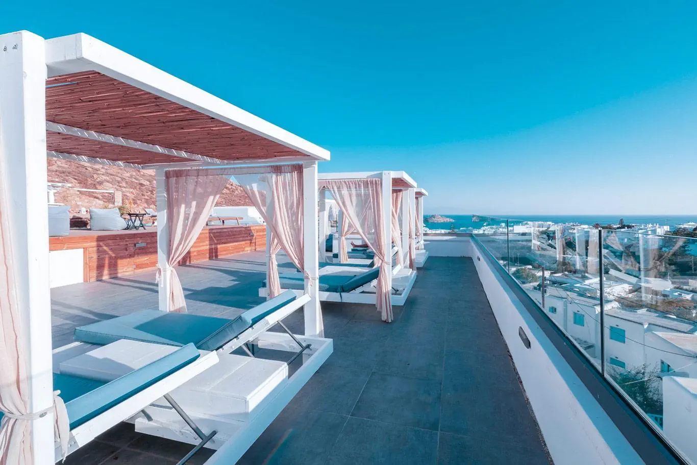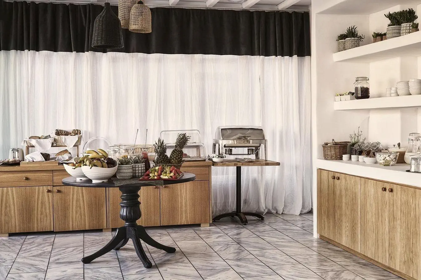 Zapraszamy do skorzystania z naszej oferty sportowo-rekreacyjnej. Obiekt posiada basen i basen otwarty. Do dyspozycji gości jest również taras oraz taras do opalania wraz z leżakami i parasolami przeciwsłonecznymi. O Państwa pełne odprężenie zadba kąpiel w jacuzzi. Na miejscu dostępny jest ponadto bar z przekąskami. Gościom aktywnie spędzającym czas polecamy zabiegi masażu. Copyright GIATA 2004 - 2025. Multilingual, powered by www.giata.com for client no. 126413Wyżywienie - Mr & Mrs White Mykonos (ex. Adelmar)