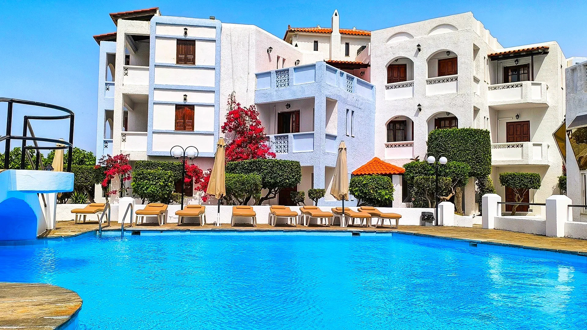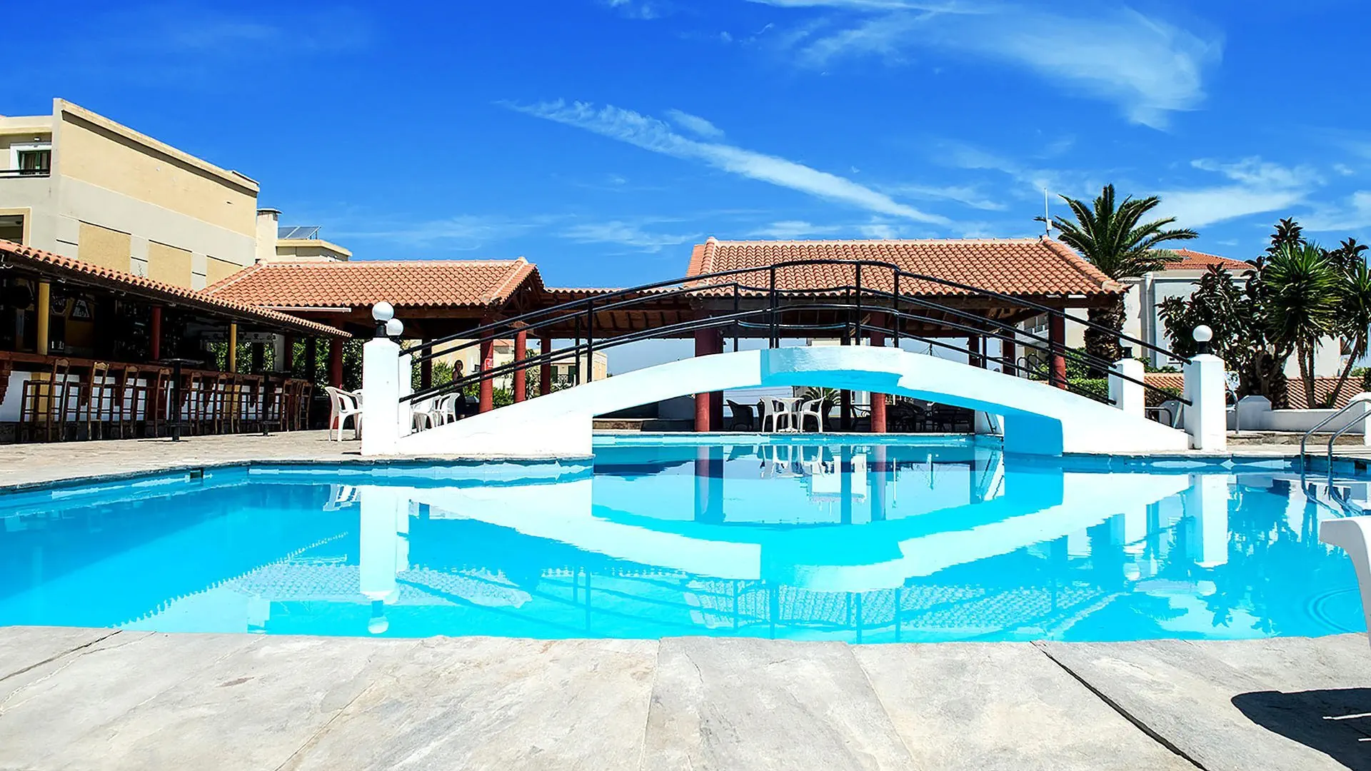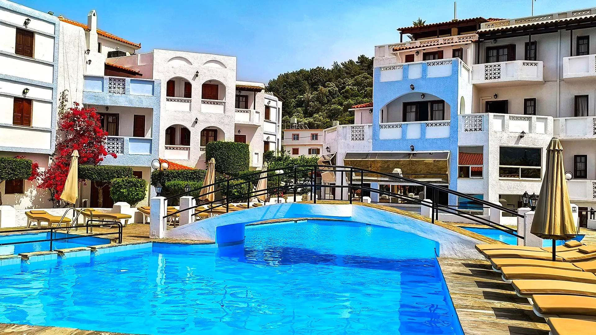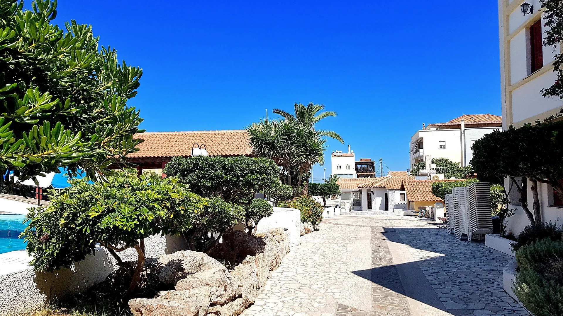 Restauracje - restauracja – dania w formie bufetu, kuchnia grecka - 2 bary, w tym przy basenie 2 posiłki - śniadanie - obiadokolacja - napoje do obiadokolacji dodatkowo płatne -