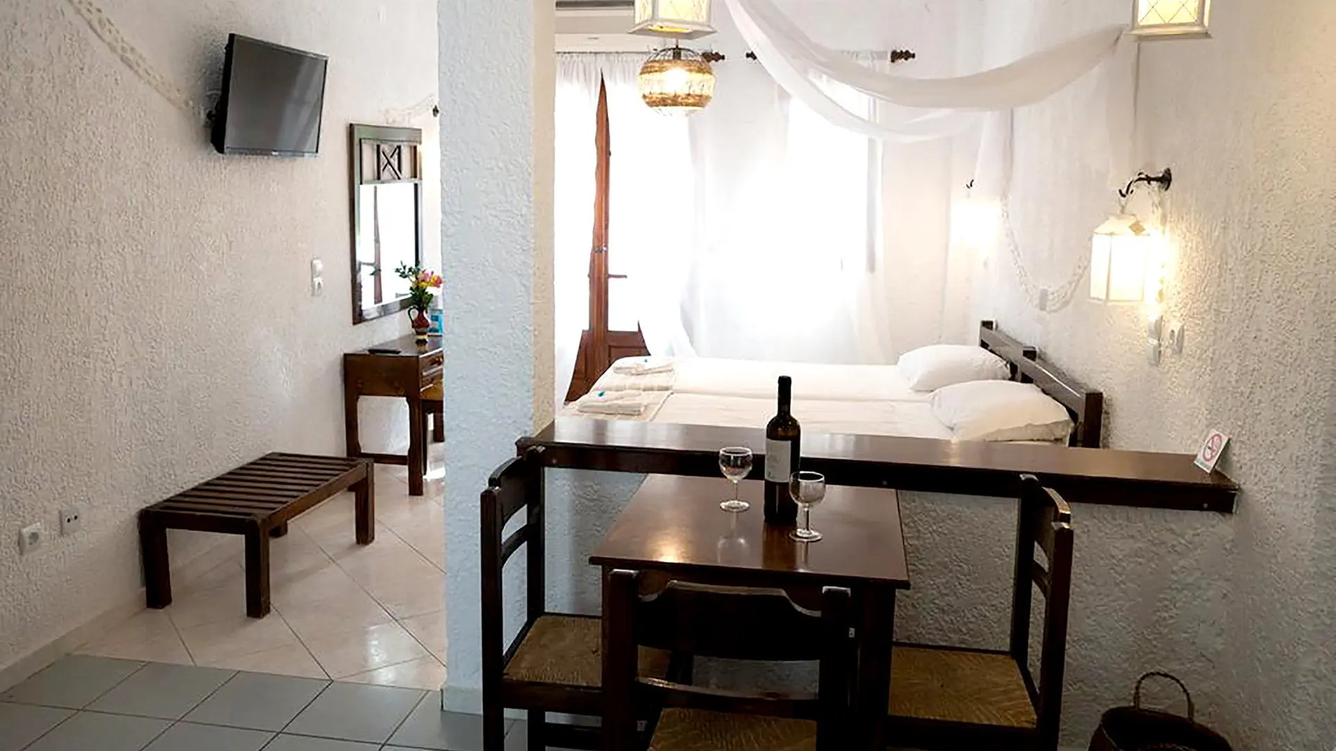 studio - 2-os. (możliwość 1 dostawki – sofa) - ok. 25 m² - zadbany - klimatyzowany - łazienka (wanna lub prysznic, wc, suszarka) - telewizor - telefon - sejf - lodówka - bezpłatne łóżeczko dla dziecka do 2 lat na zamówienie przed przyjazdem - balkon lub taras (stolik i krzesełka)Wyżywienie - Anema By The Sea