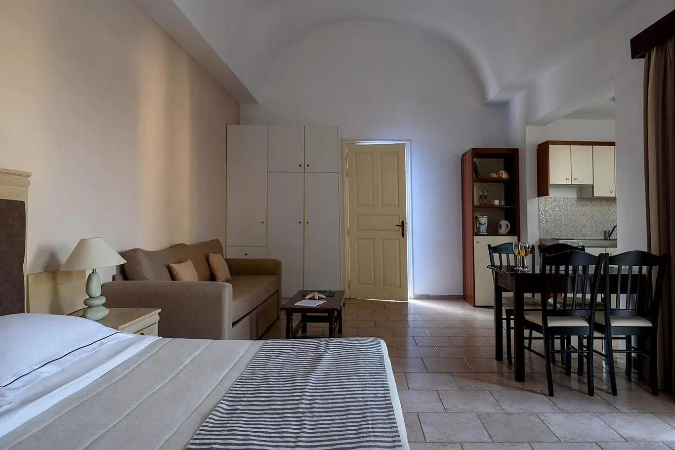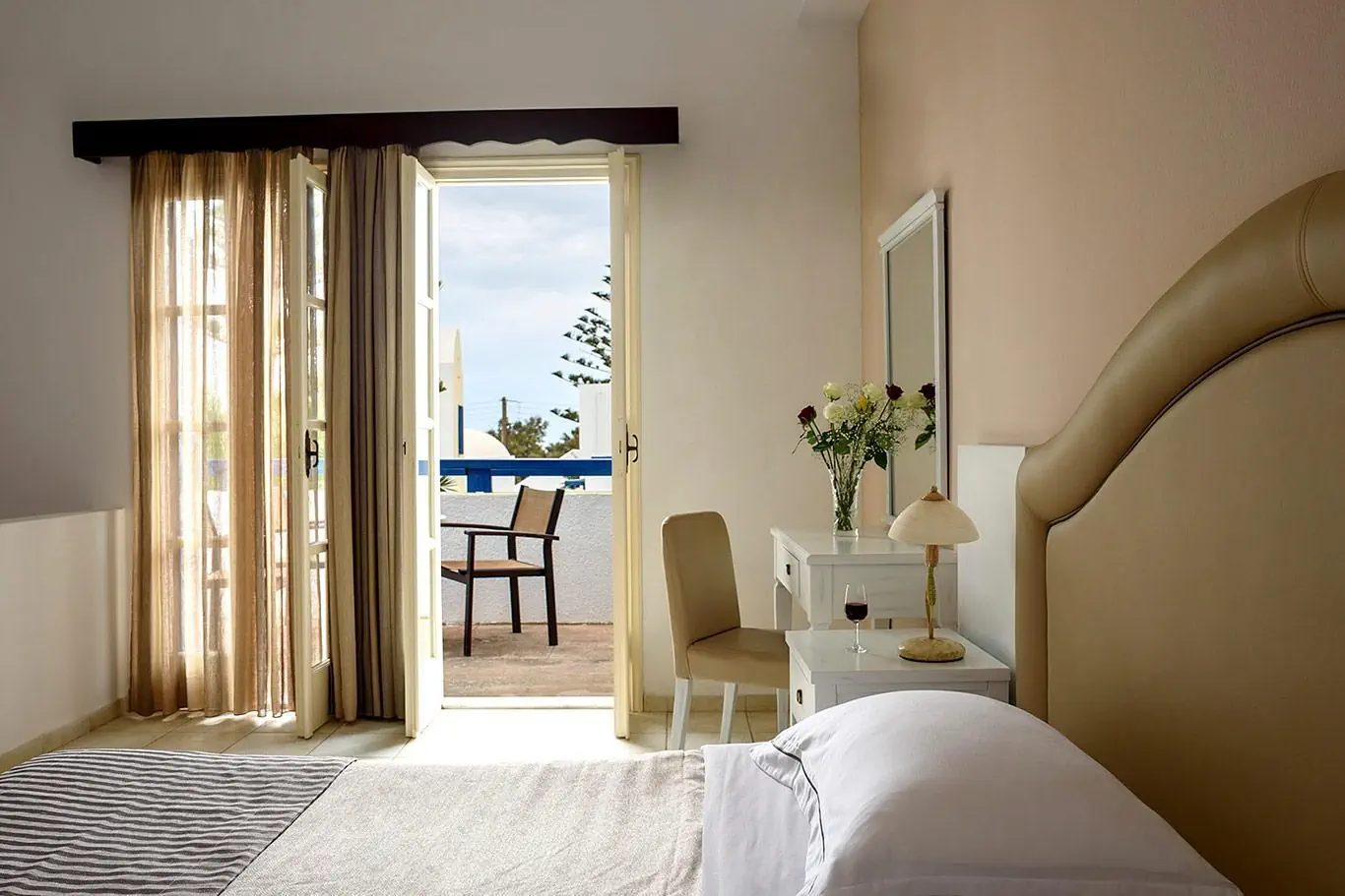 Hotel zbudowany został w roku 1992. Gorąco polecamy Państwu jeden z naszych 23 pokoi Suite. Na miejscu znajduje się przechowalnia bagażu i sejf. W pomieszczeniach ogólnodostępnych skorzystać można z Wi-Fi (bezpłatnie). Pomocą w rezerwacji wycieczek służy Państwu nasz tour-desk. Do oferty gastronomicznej hotelu należy sala śniadaniowa i bar. W obrębie obiektu znajduje się ogród. Goście przybywający własnym autem skorzystać mogą z parkingu (bezpłatnie). Do pozostałych świadczonych usług należą wielojęzyczny personel, wypożyczalnia samochodów, transfer hotelowy i pobudka na życzenie.Pokoje - Scorpios Beach