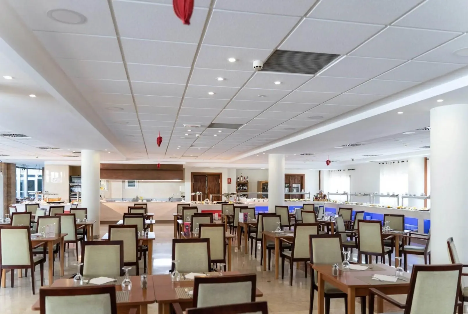 Wszystkie pokoje hotelowe dysponują balkonem lub tarasem, są klimatyzowane i wyposażone w suszarkę do włosów, telewizor, biurko i minibar. Single Use Standard Room - pokój z dwoma pojedynczymi łóżkami przeznaczony do pojedynczego wykorzystania Twin Standard Room - pokój z dwoma łóżkami o szerokości 105 cm Triple Basic Room - pokój z trzema łóżkami o szerokości 105 cm Twin Standard Room (SeaView) - pokój z dwoma łóżkami o szerokości 105 cm oraz widokiem na morze, zatokę Altea i skałę Penon de Ifach Double Royal Room - pokój z łóżkiem 2x2m oraz widokiem na morze, zatokę Altea i skałę Penon de Ifach. Od pozostałych pokojów wyróżnia go ponadto elegancki wystrój.Wyżywienie - Sun Palace Albir & Spa
